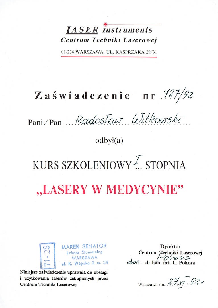 Certyfikat 1992.11.27 szkolenie Warszawa