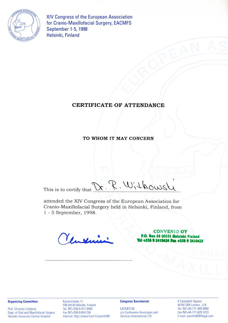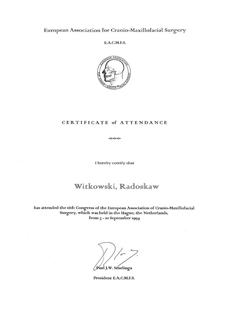Certyfikat 1994.09.05 E.A.C.M.F.S Hague Holandia