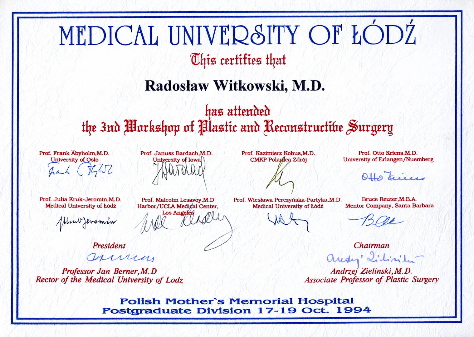 Certyfikat 1994.10.17 szkolenie Lodz