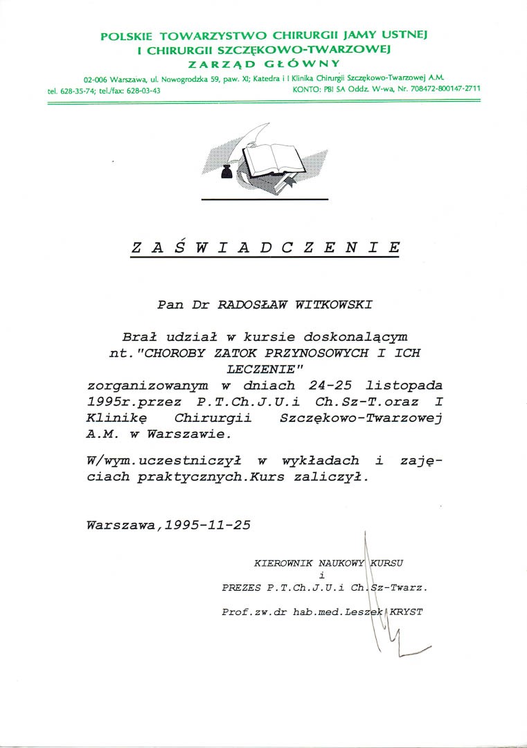 Certyfikat 1995.11.25 szkolenie Warszawa