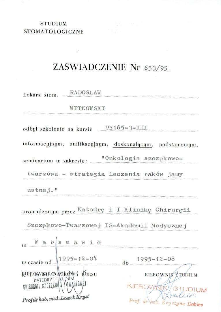 Certyfikat 1995.12.04 szkolenie Warszawa