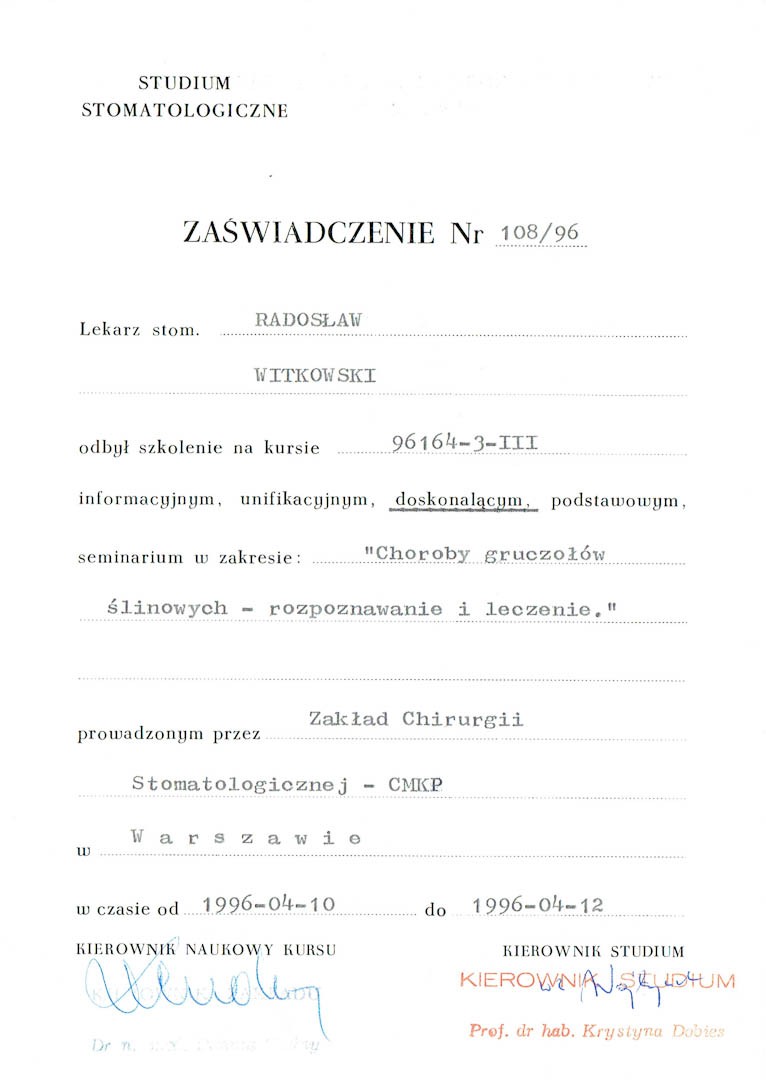 Certyfikat 1996.04.10 szkolenie Warszawa