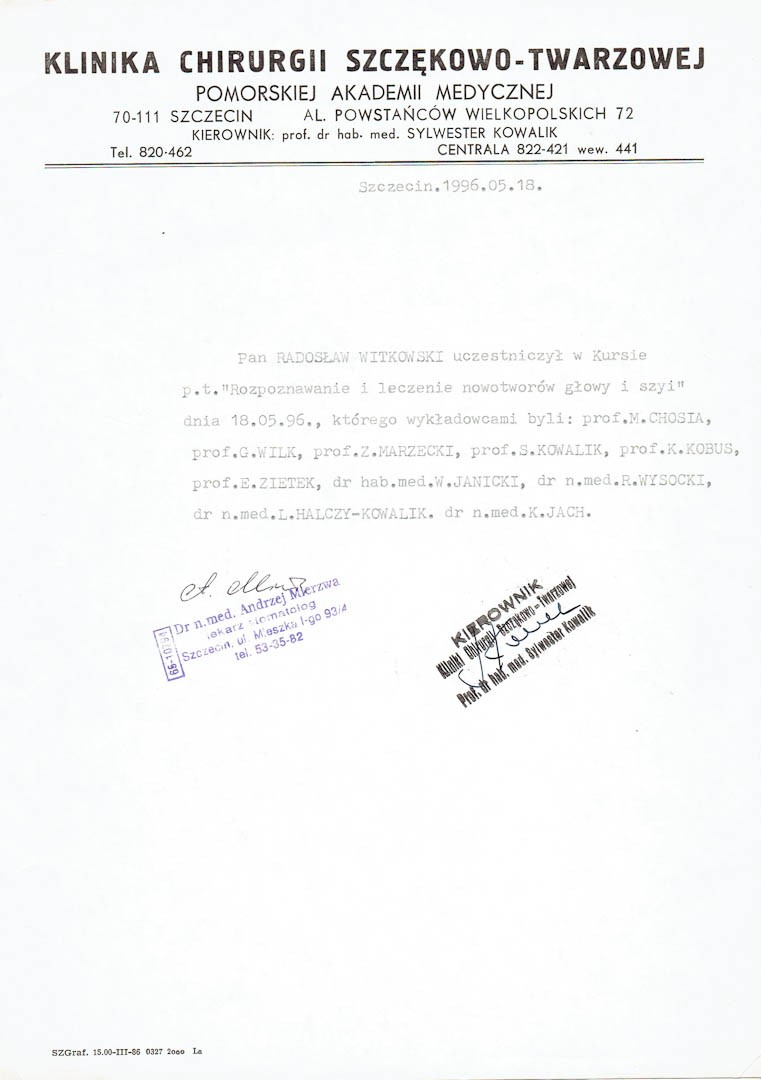 Certyfikat 1996.05.18 szkolenie Szczecin