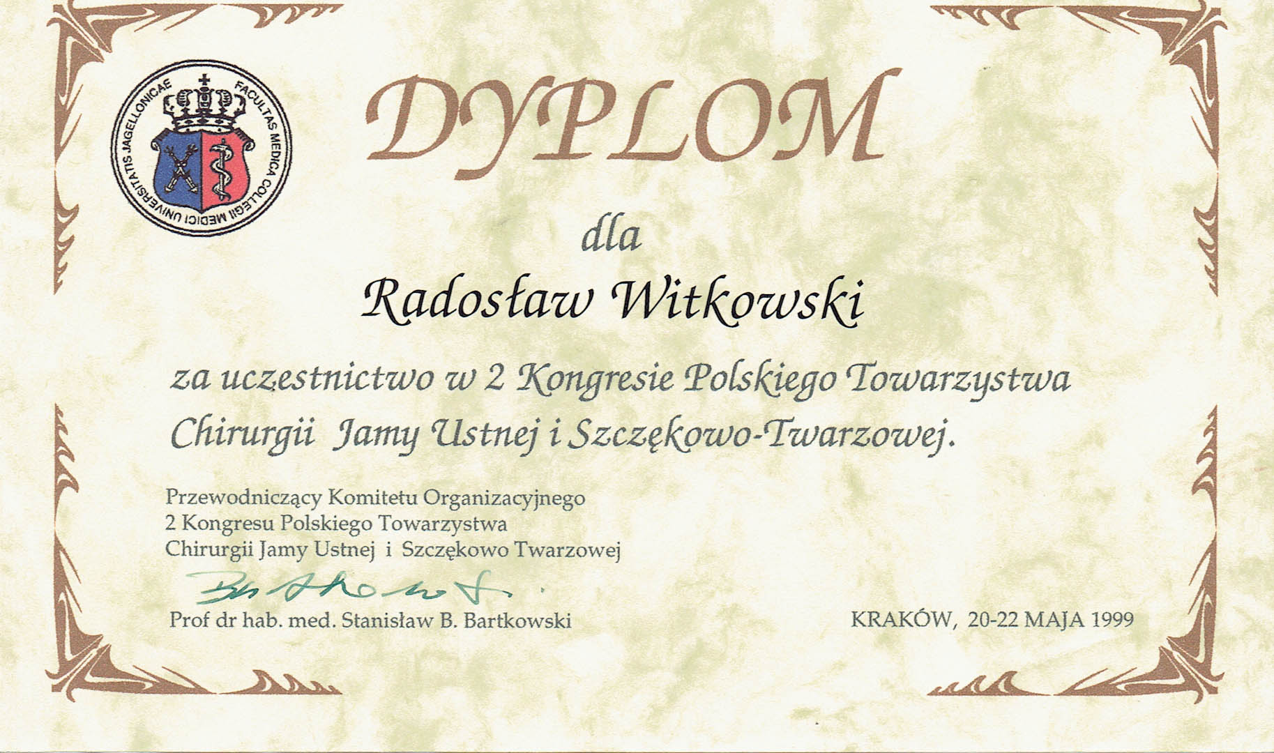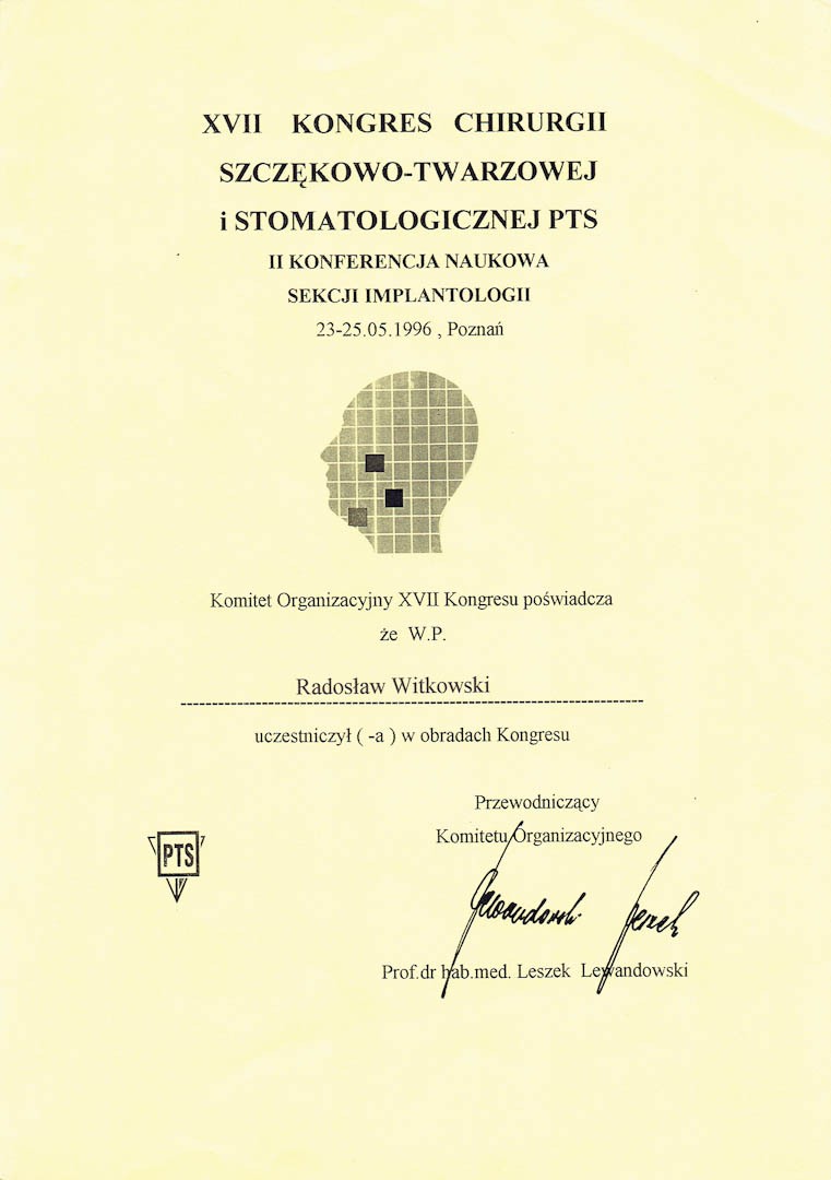 Certyfikat 1996.05.23 Kongres Poznan