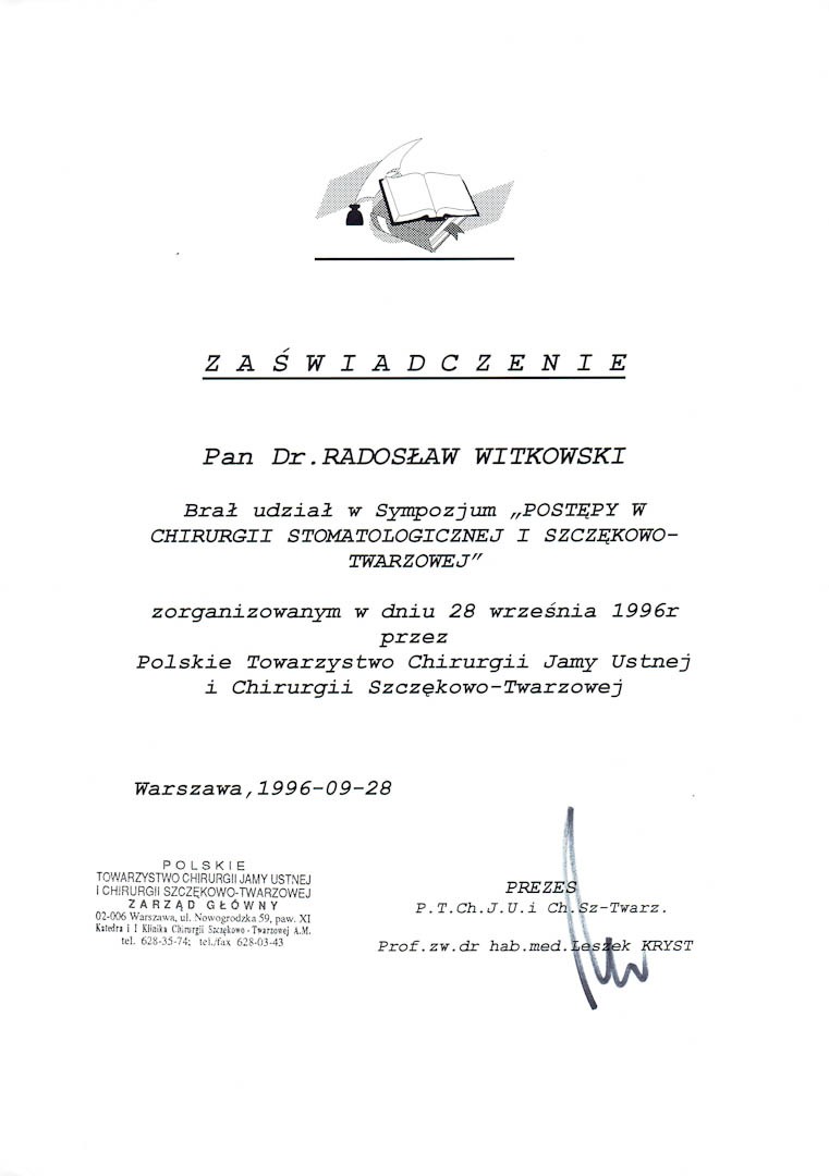 Certyfikat 1996.09.28 szkolenie Warszawa