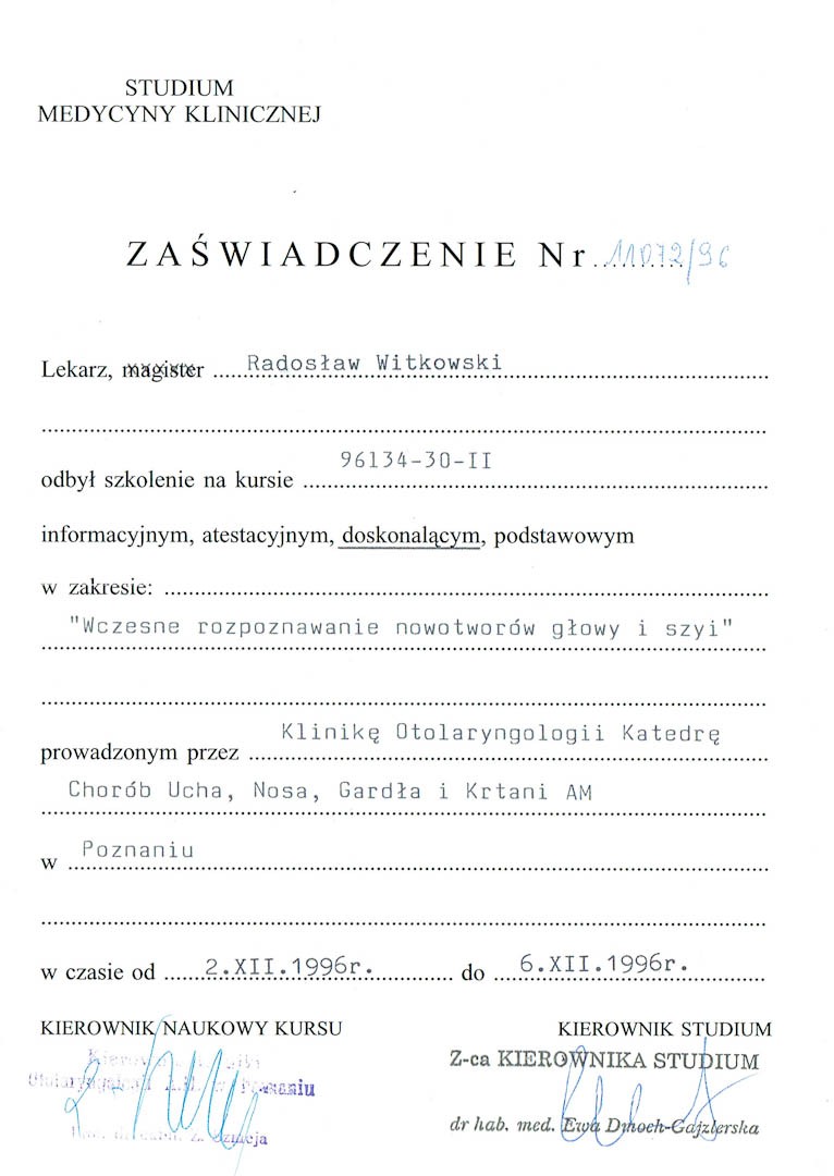 Certyfikat 1996.12.02 szkolenie Poznan