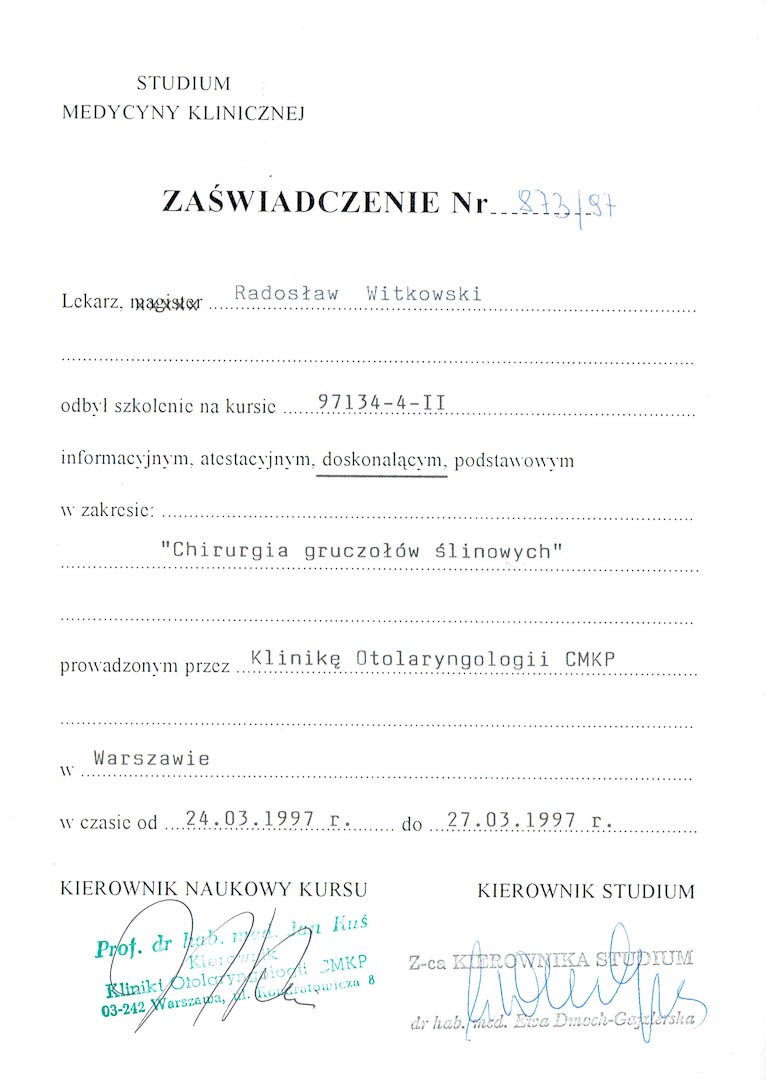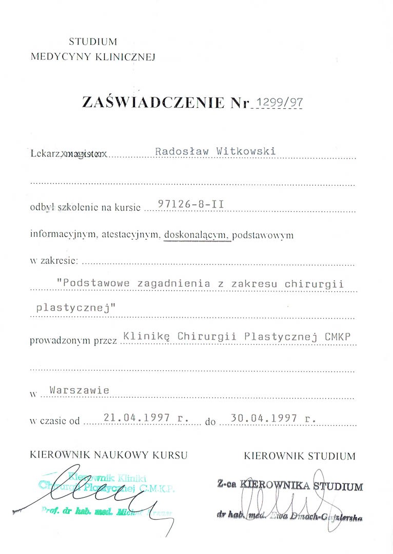 Certyfikat 1997.04.30szkolenie Polanica Zdroj