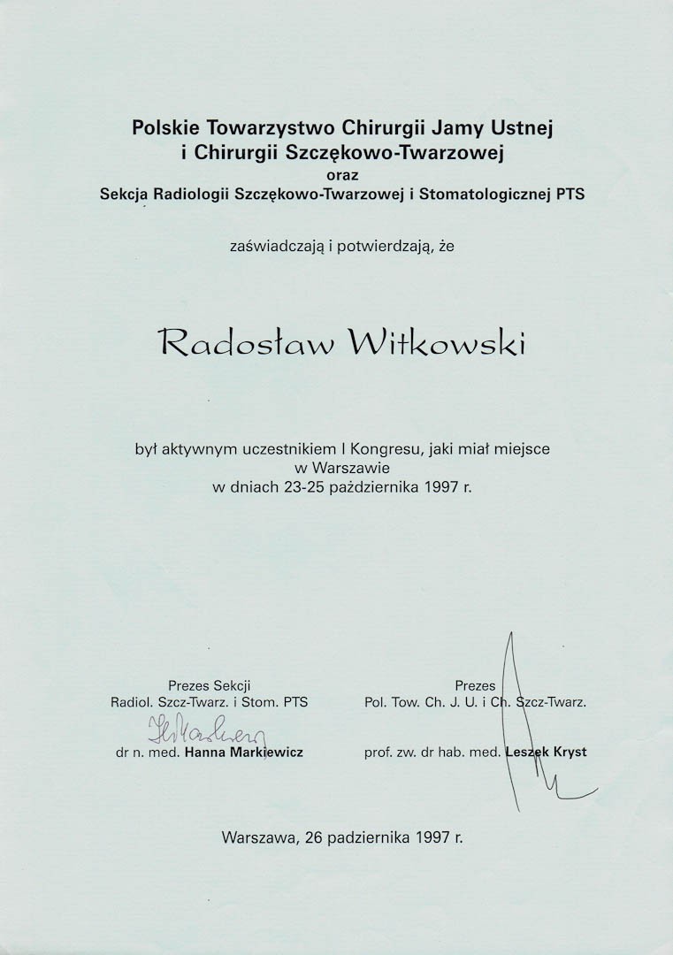 Certyfikat 1997.10.26 Kongres Warszawa