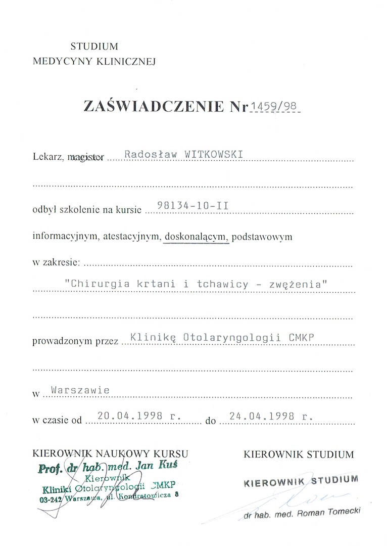 Certyfikat 1998.04.20 szkolenie Warszawa