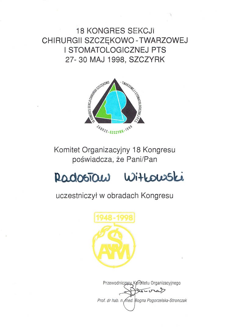 Certyfikat 1998.05.27 30 kongres Szczyrk