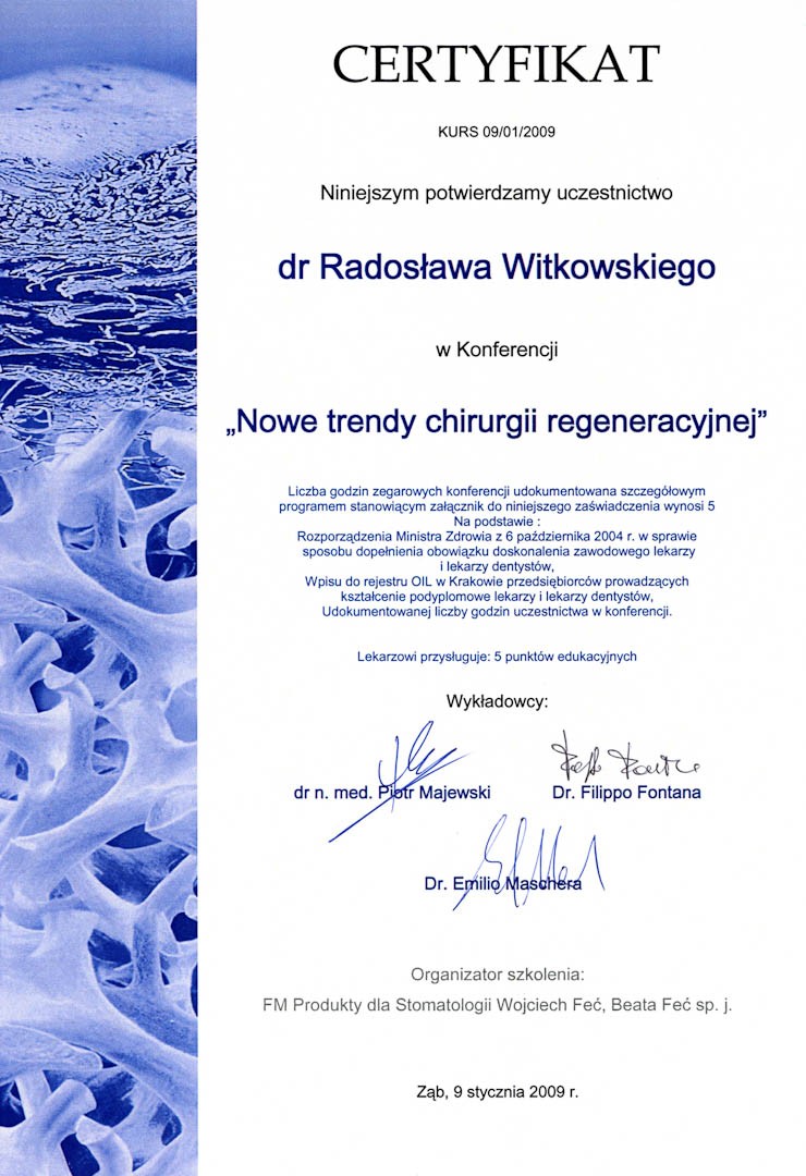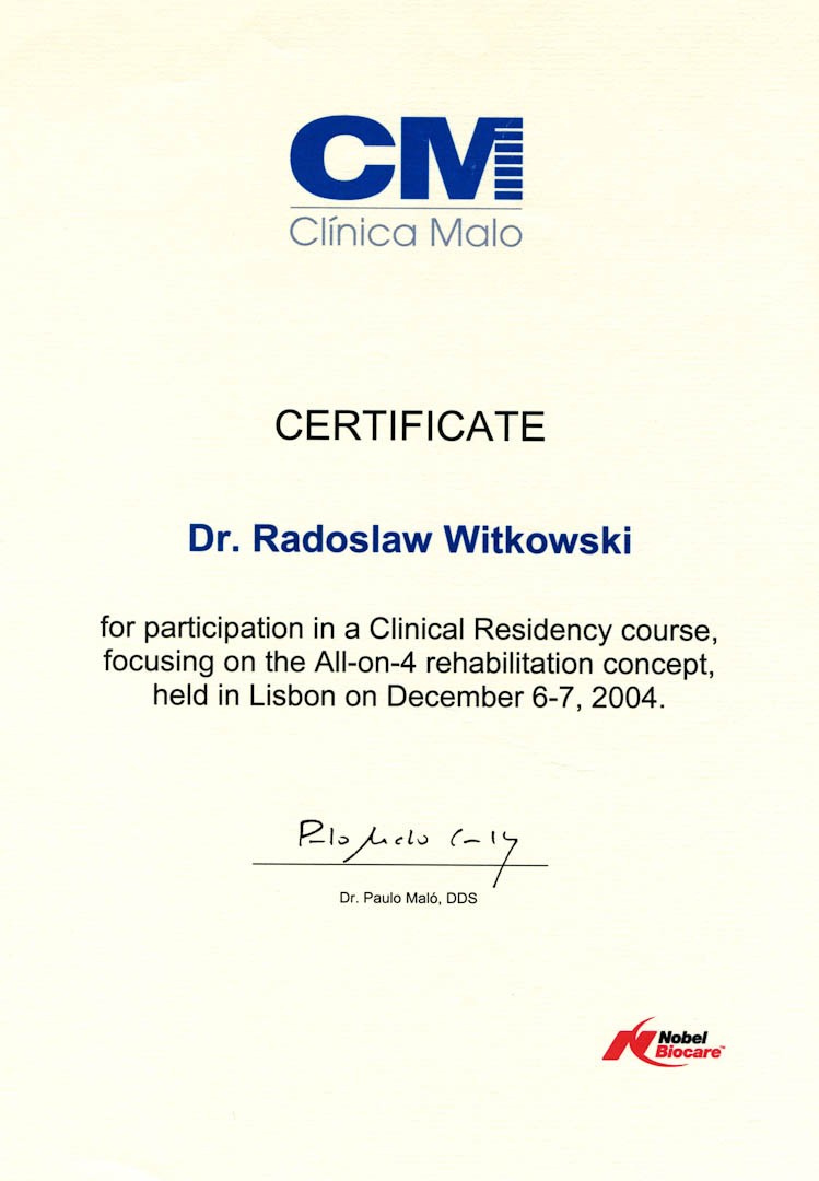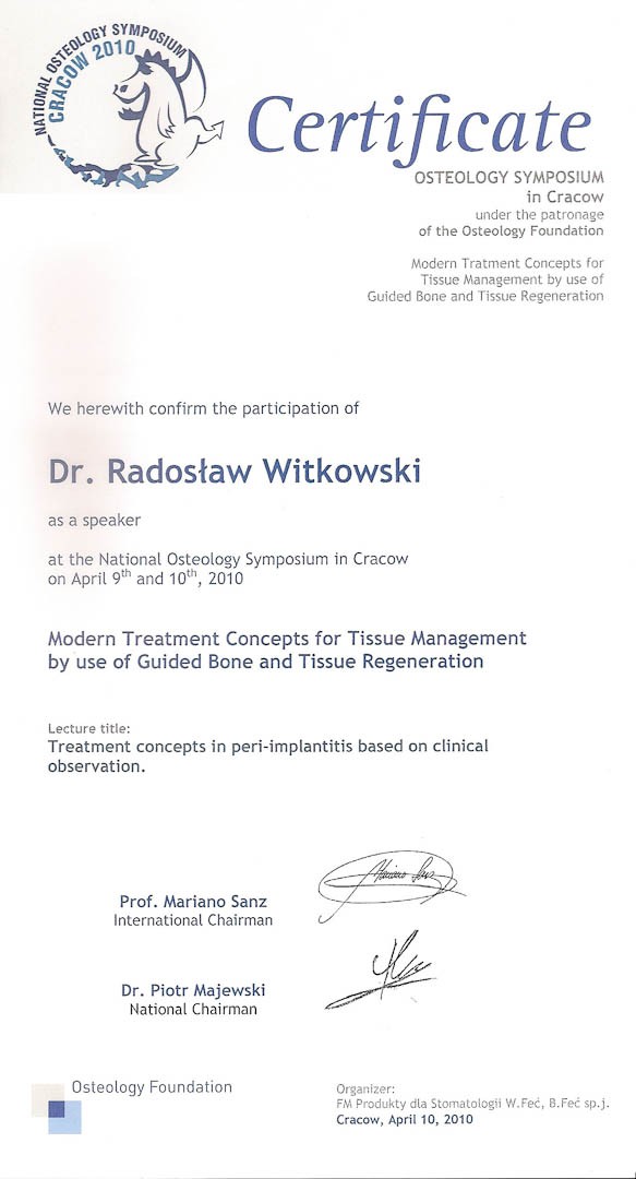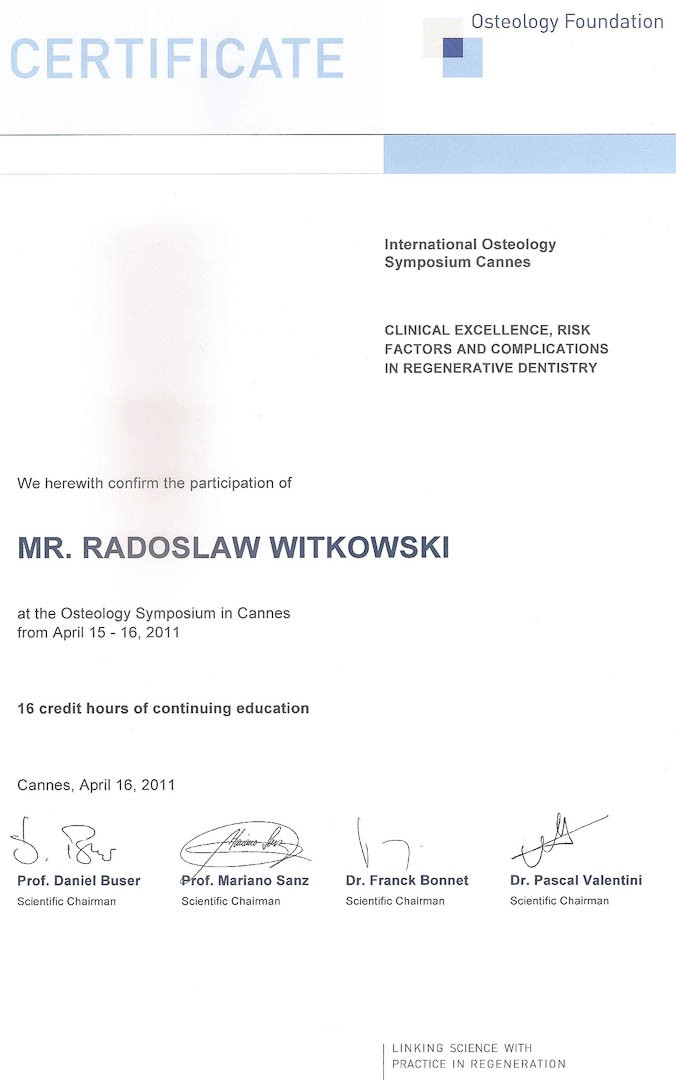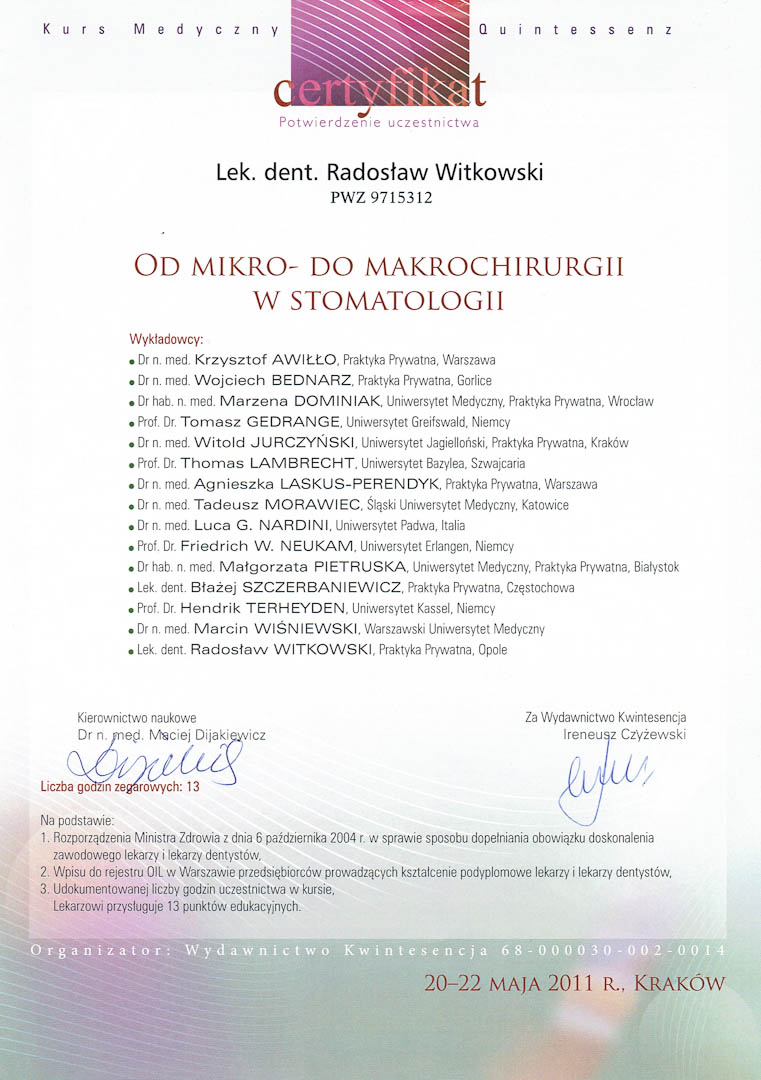 Certyfikat 2011.03.11 szkolenie Zygoma