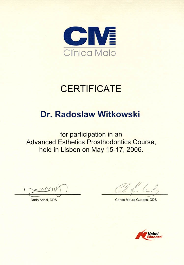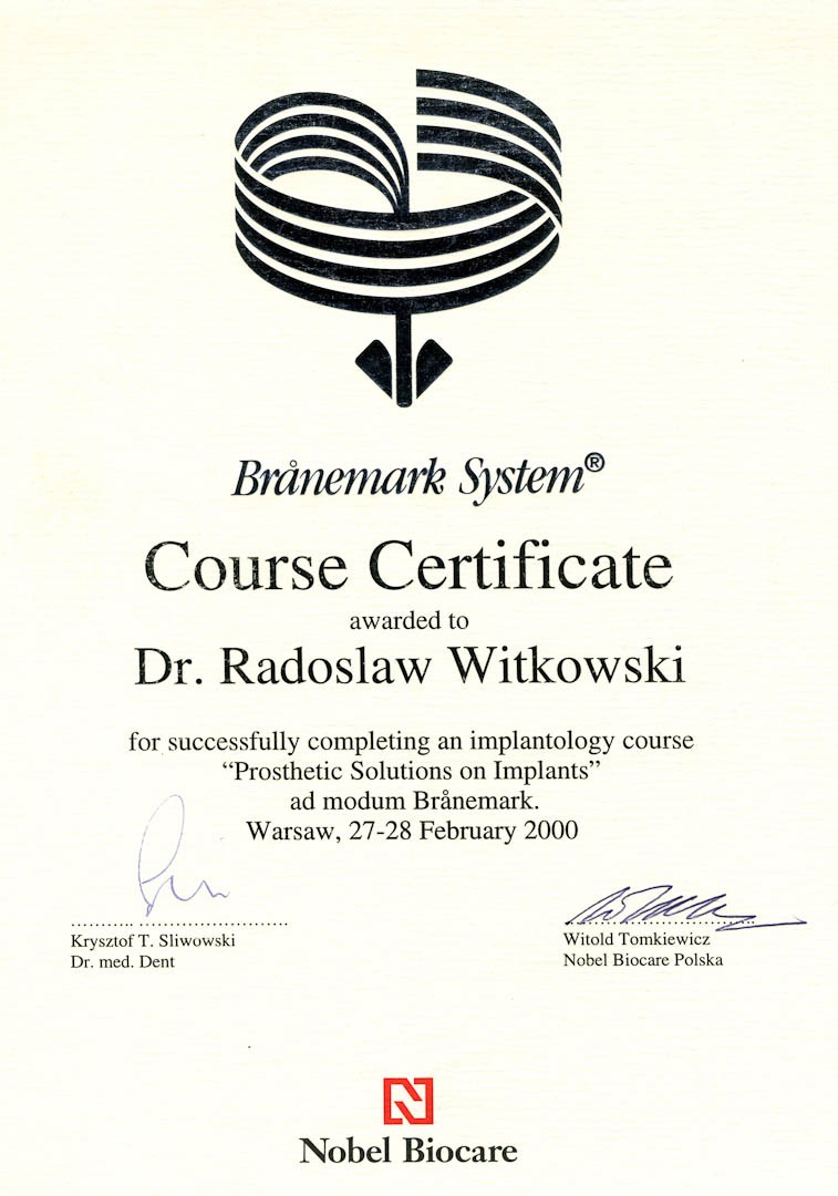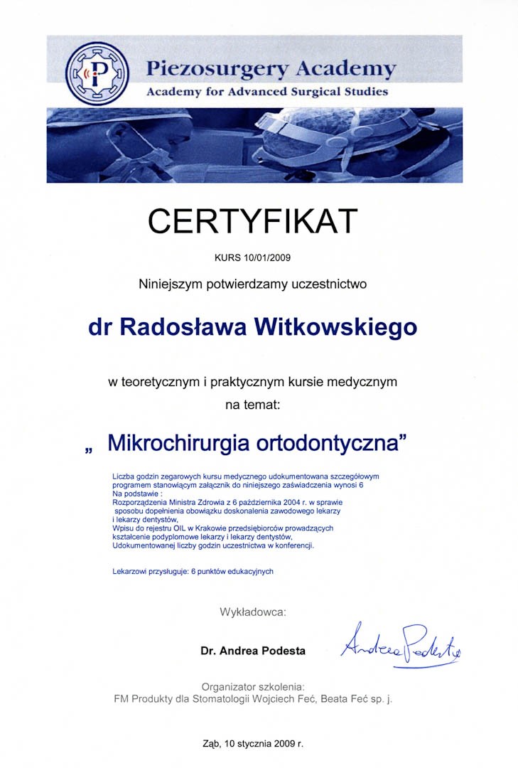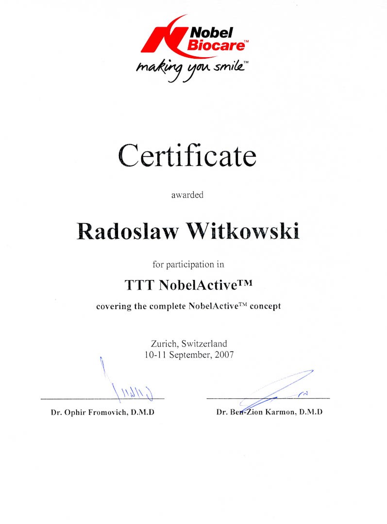 Certyfikat 2011.03.11 szkolenie Zygoma