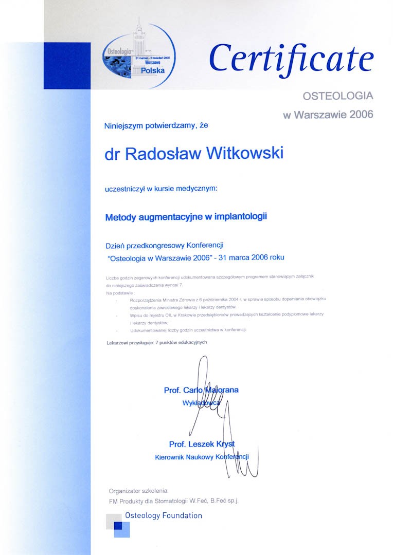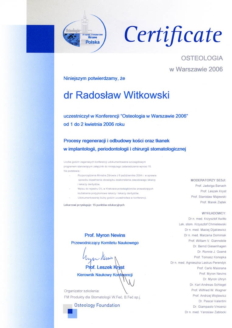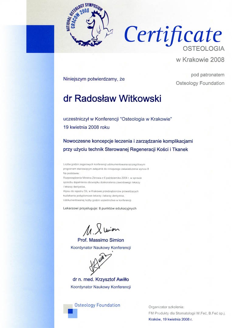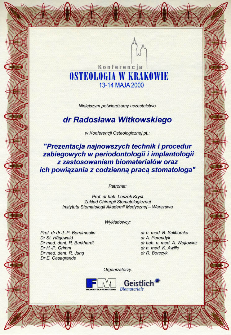 Certyfikat 2000.05.13 Konferencja Osteologii Krakow