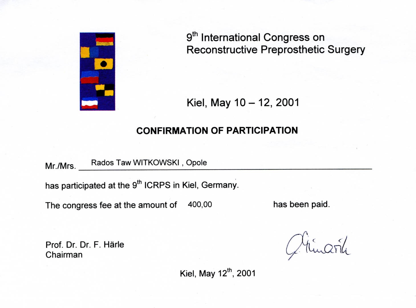 Certyfikat 2001.05.10 szkolenie Kiel