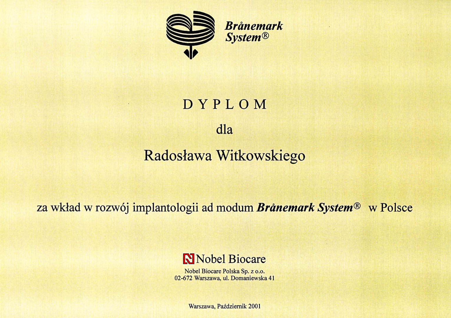 Certyfikat 2001.11.dyplom Warszawa