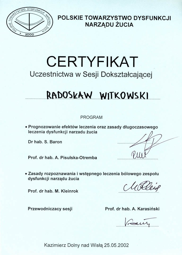 Certyfikat 2002.05.25 szkolenie Kazimierz Dolny