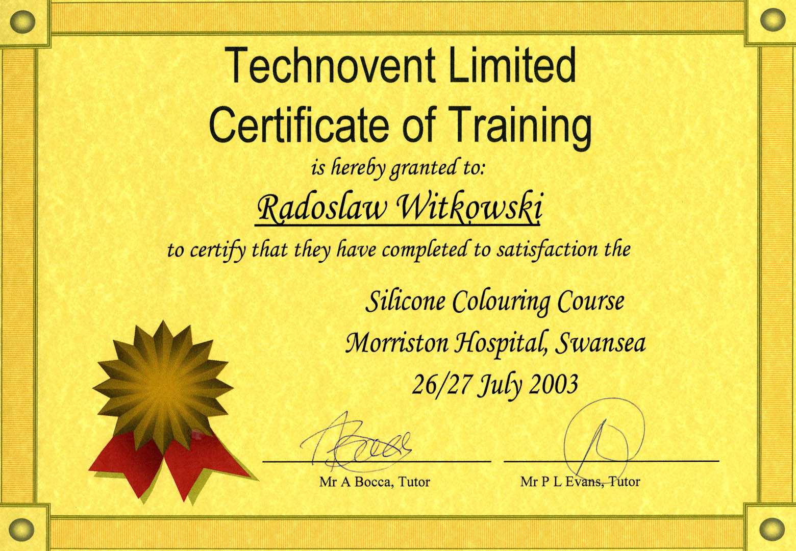 Certyfikat 2003.06.26 szkolenie Swansea