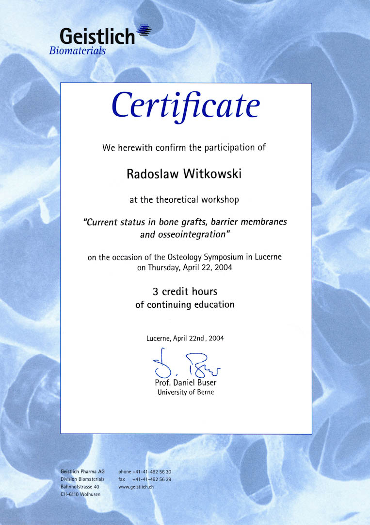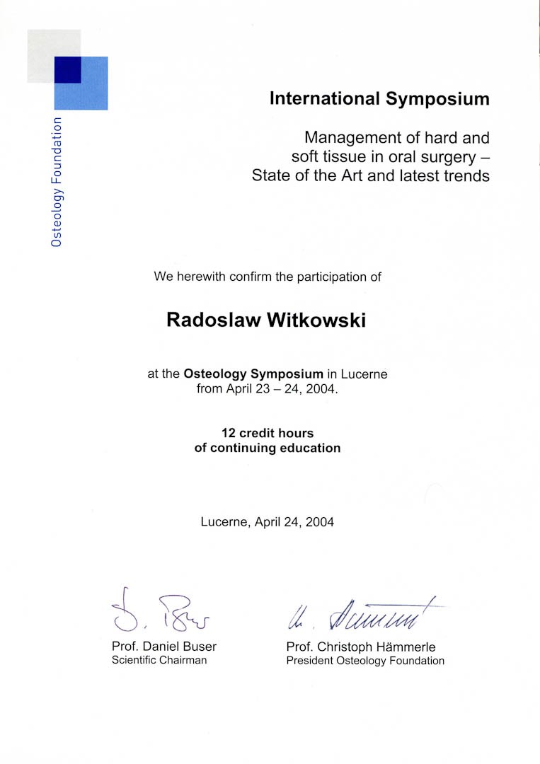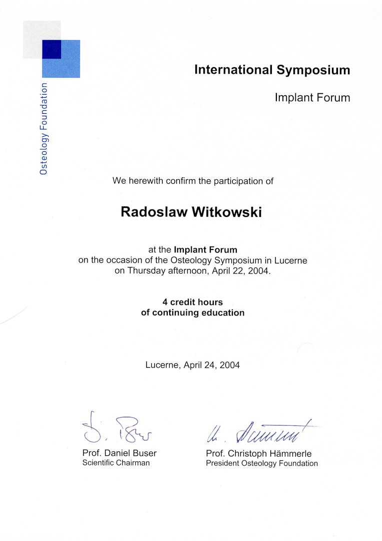 Certyfikat 2004.04.24 symposium Lucerne 2