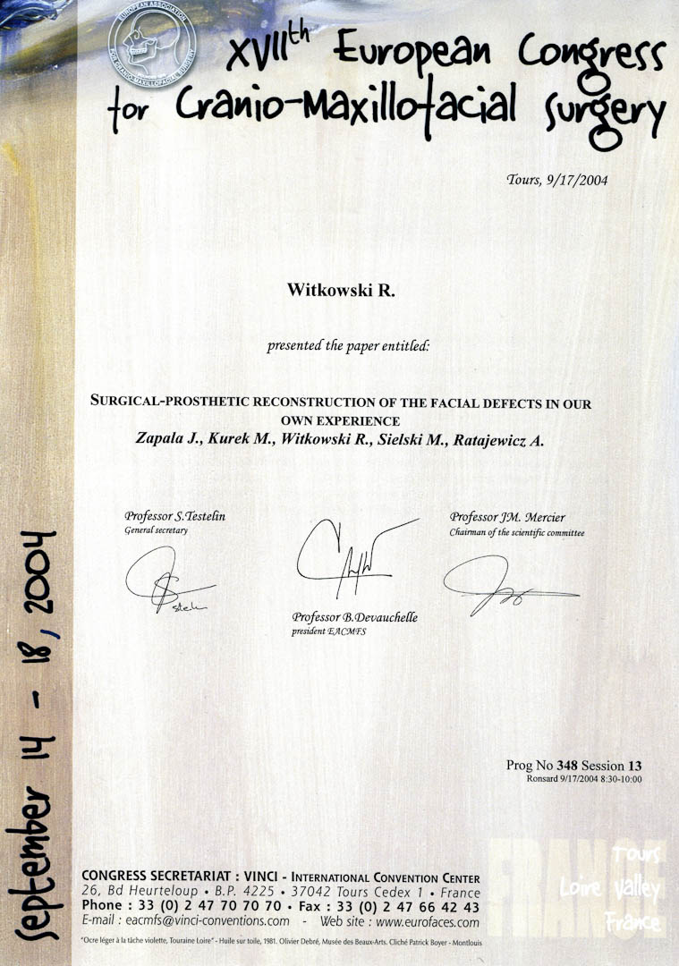 Certyfikat 2004.09.17 E.C.M.F.S. Tours