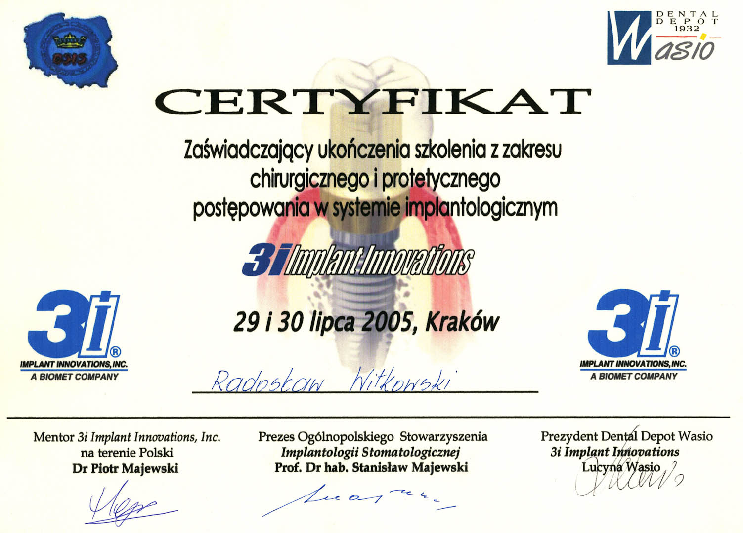 Certyfikat 2005.07.29 szkolenie Krakow