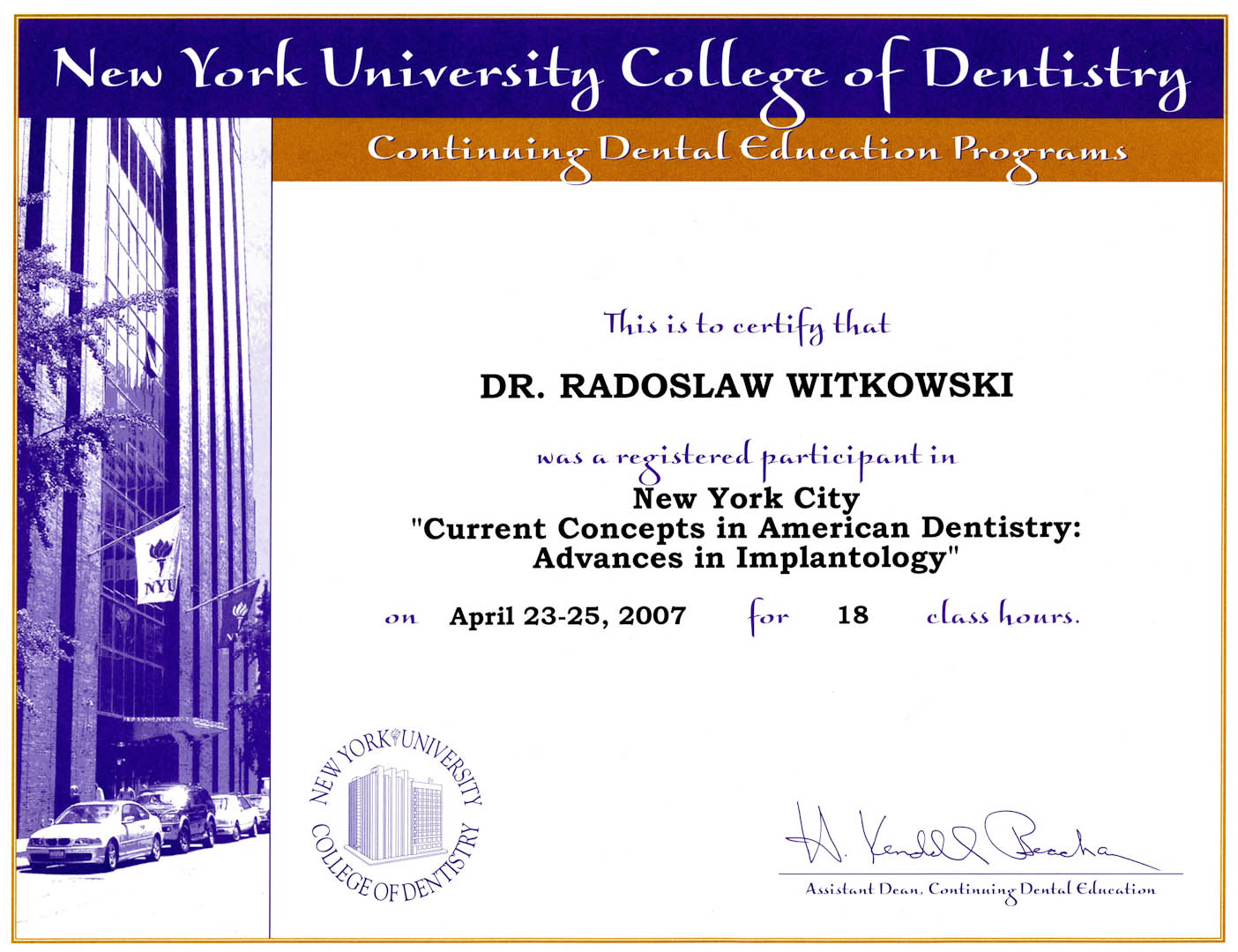 Certyfikat 2007.04.23 25 szkolenie Nowy Jork