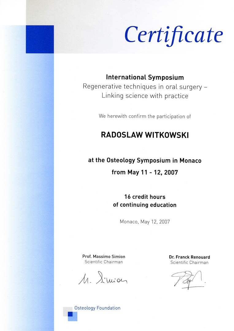 Certyfikat 2007.05.10 szkolenie Monako