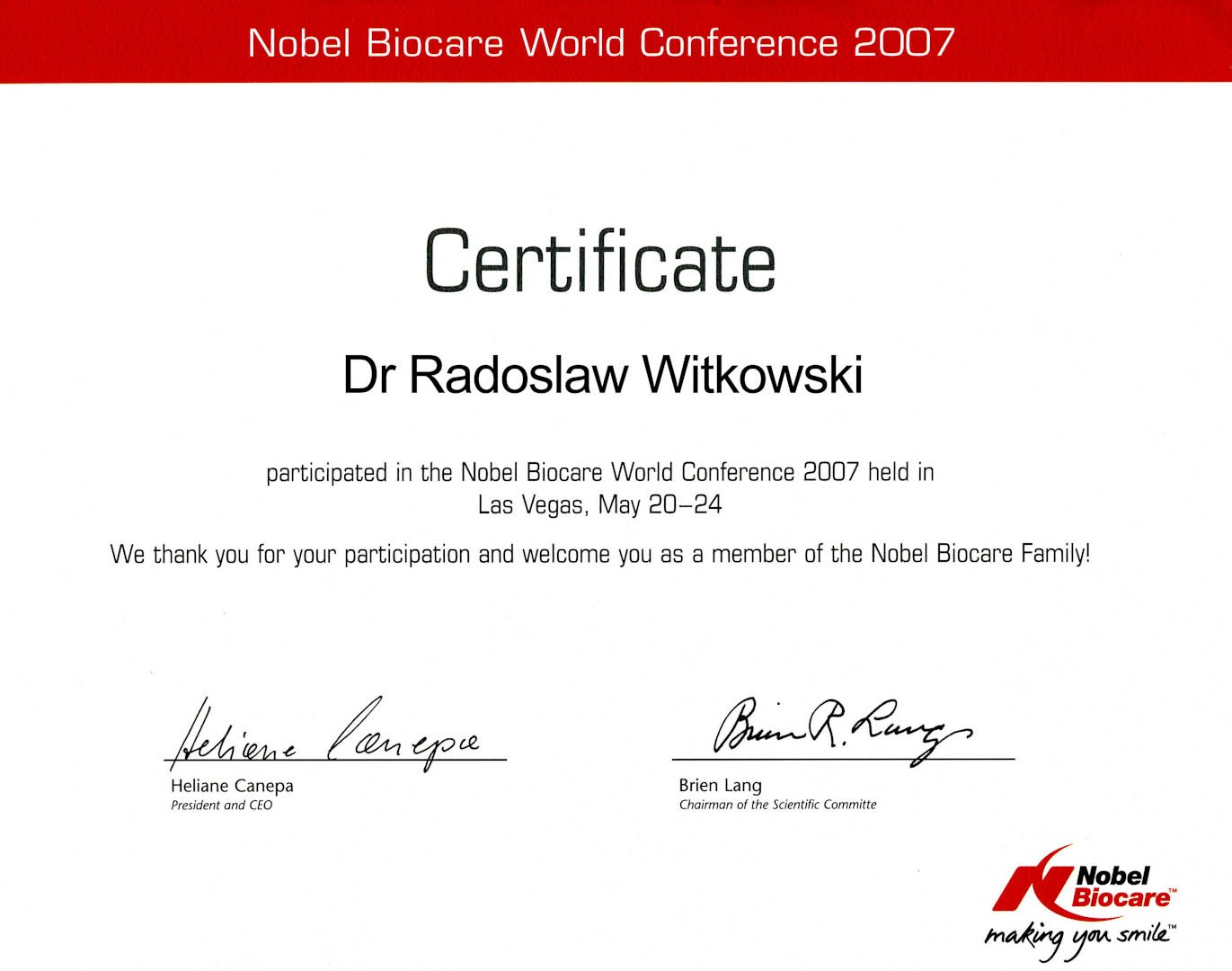 Certyfikat 2007.05.20 szkolenie Las Vegas