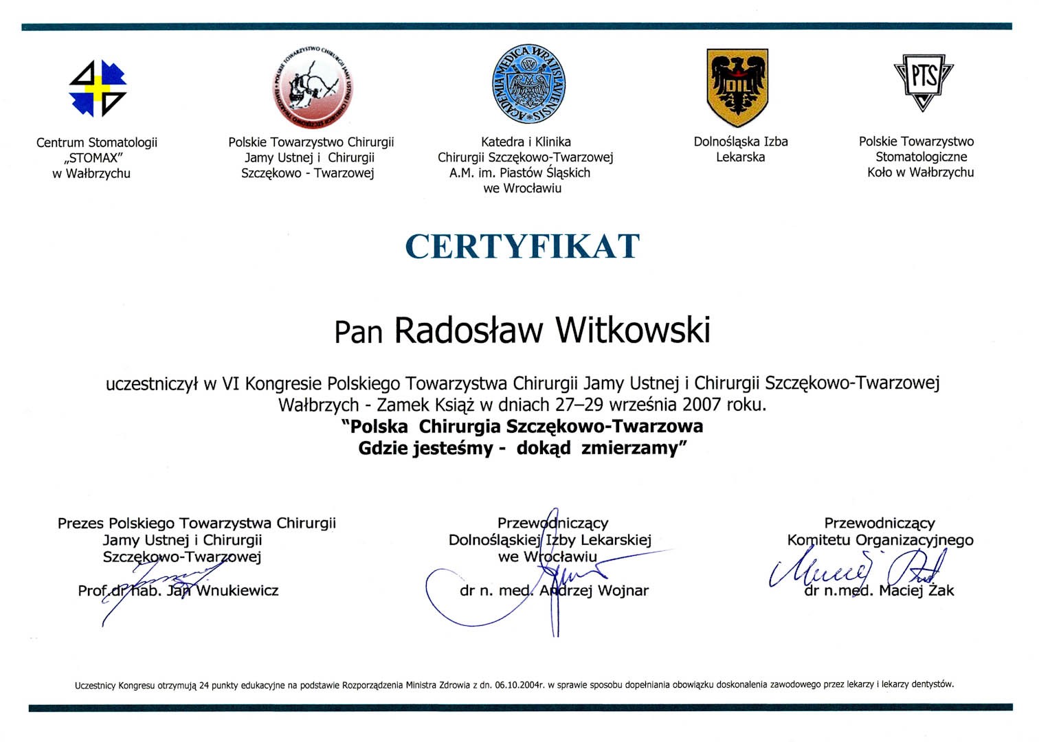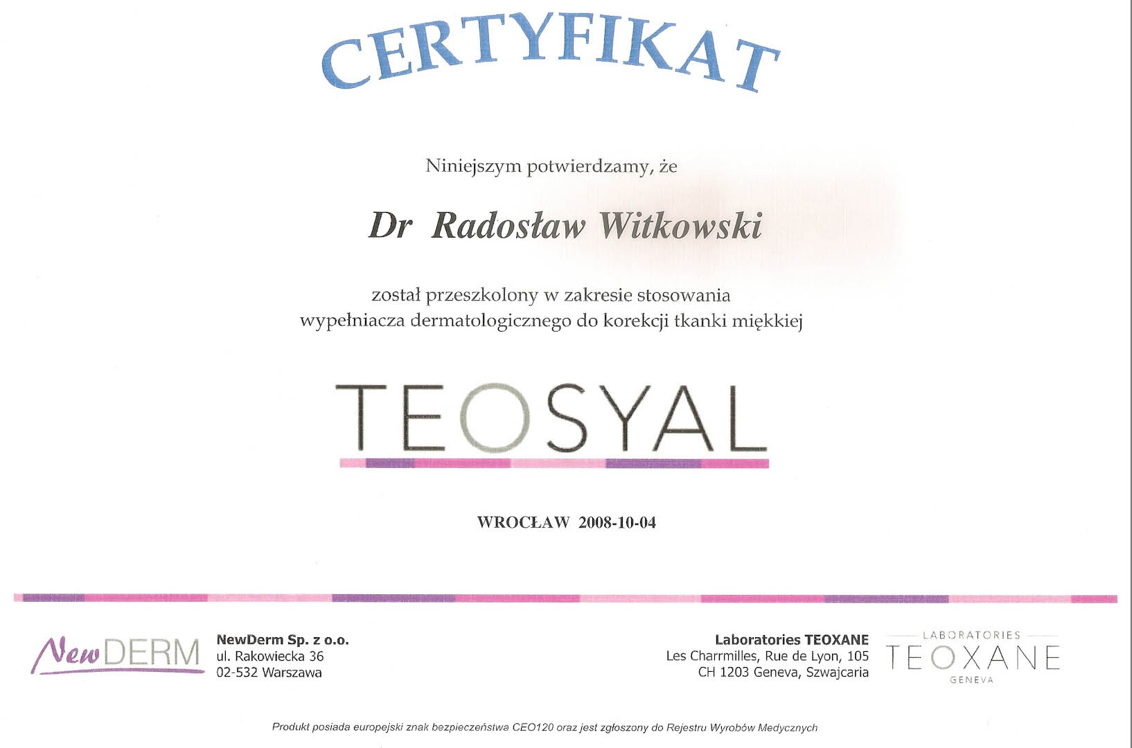 Certyfikat 2008.10.04 szkolenie Wroclaw