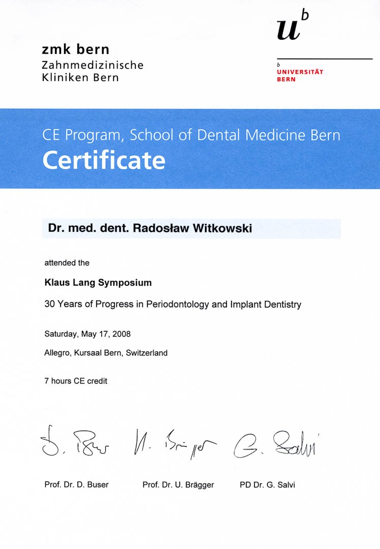 Certyfikat 2008.05.17 szkolenie Berno Szwajcaria
