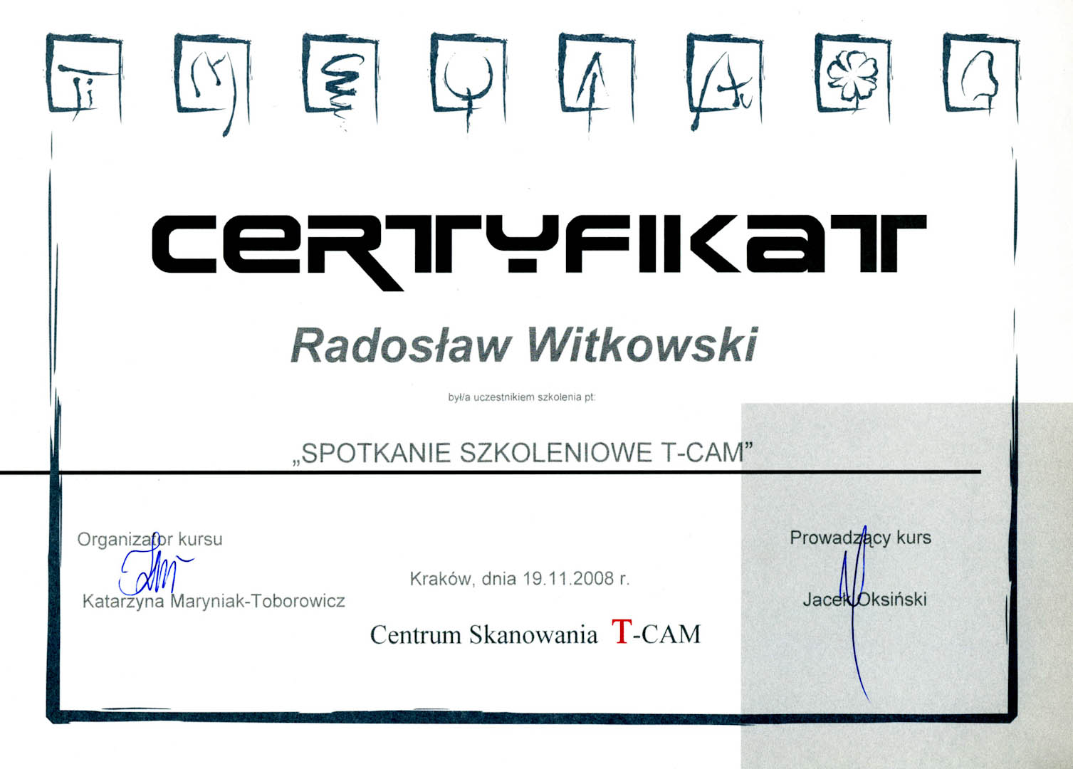 Certyfikat 2008.11.19 szkolenie Krakow
