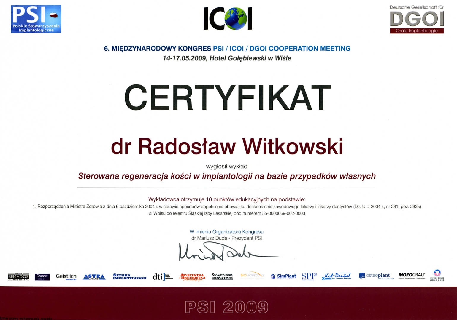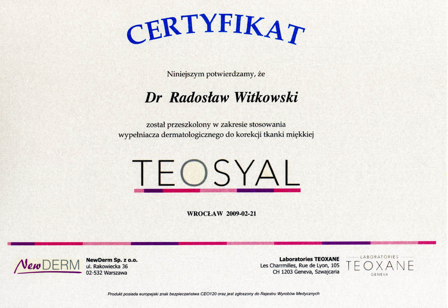 Certyfikat 2009.02.21 szkolenie Wroclaw