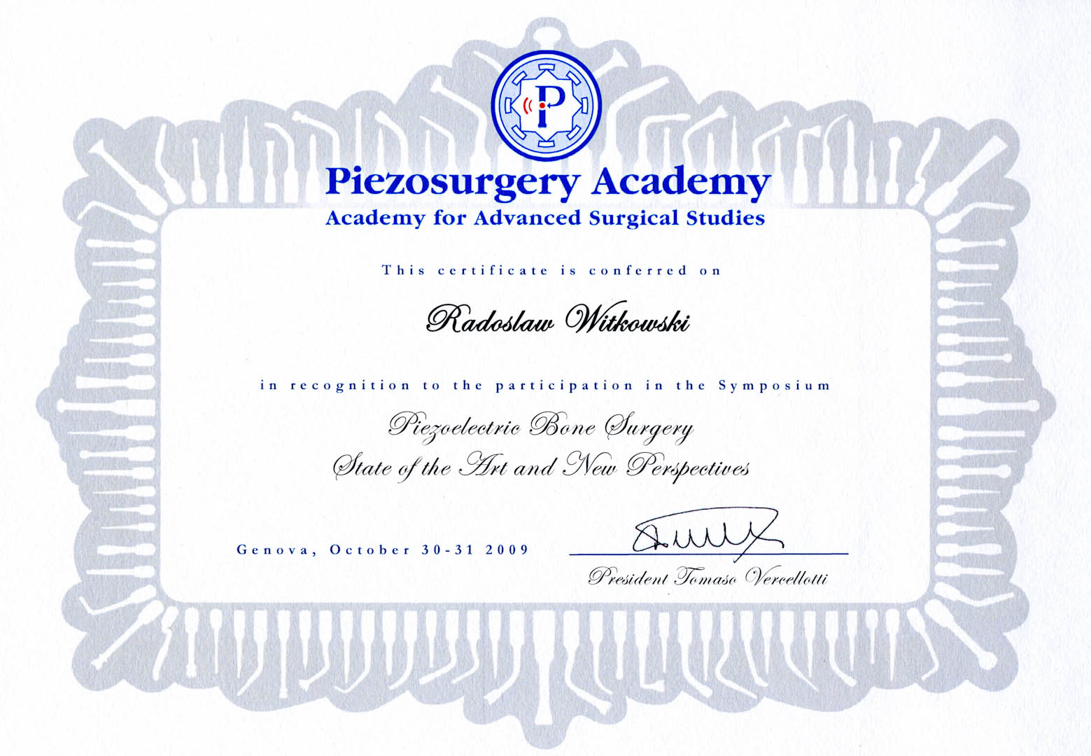 Certyfikat 2009.10.30 szkolenie Genova Wlochy