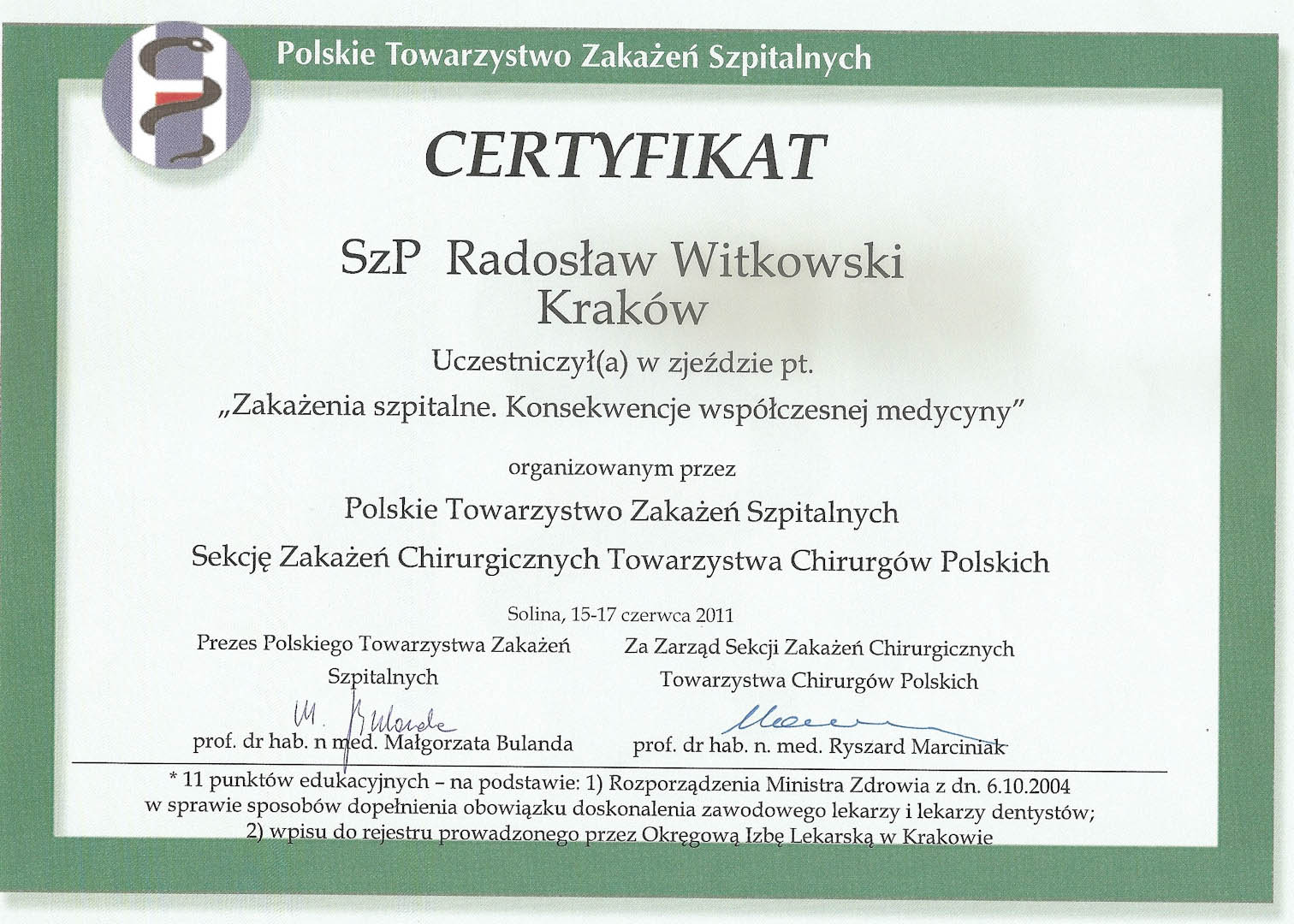 Certyfikat 2011.06.15 szkolenie Krakow