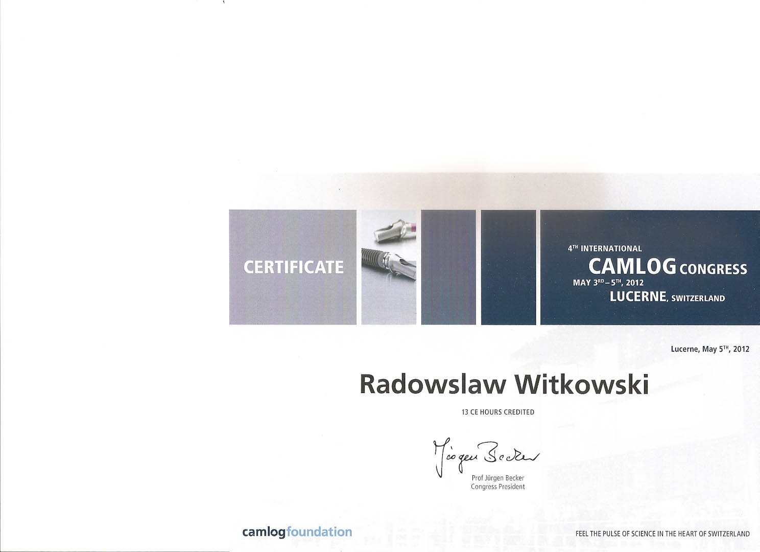 Certyfikat 2012.05.05 szkolenie Lucerne Szwajcaria