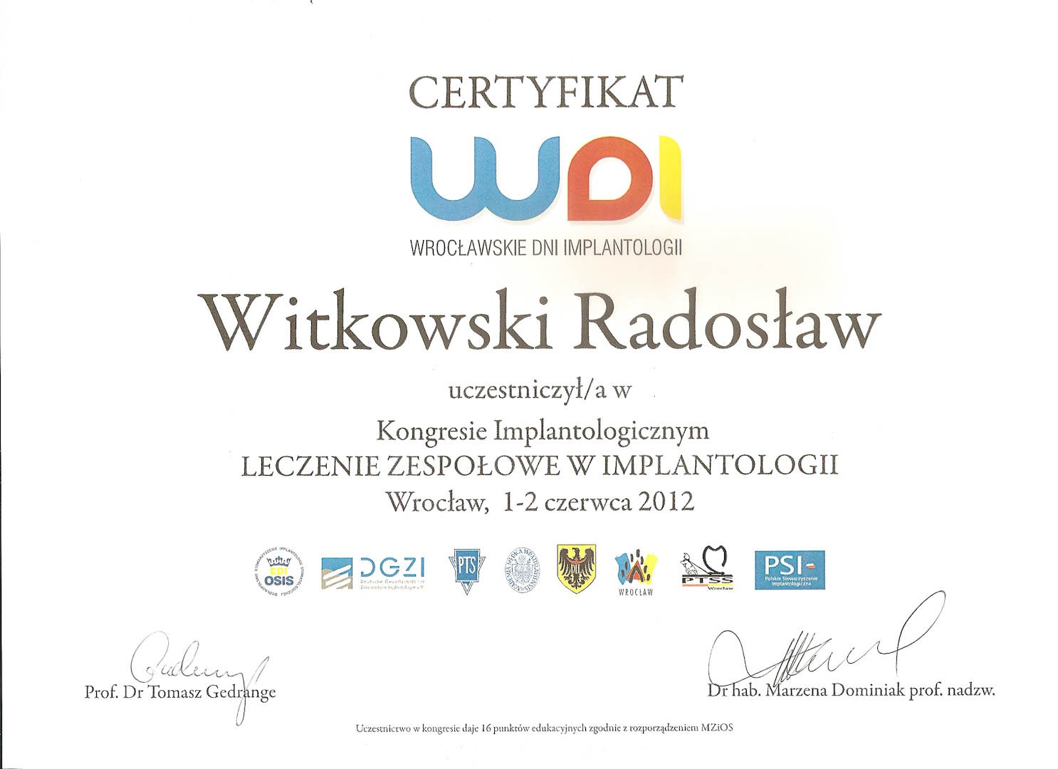 Certyfikat 2012.06.01 szkolenie Wroclaw