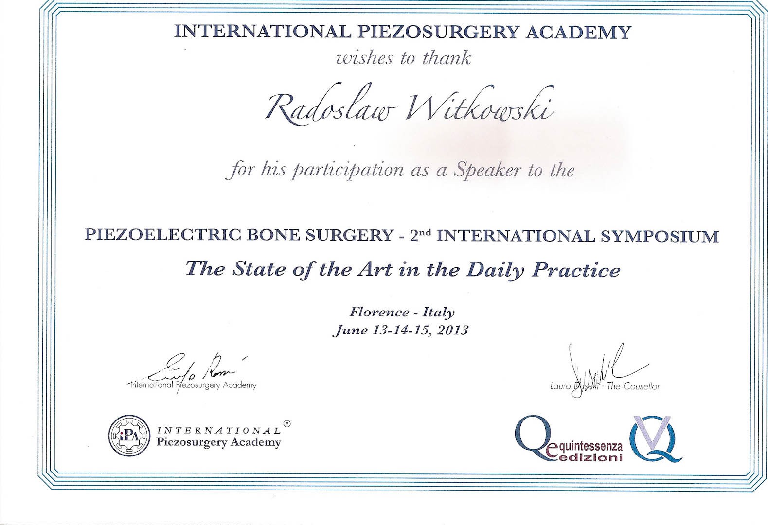 Certyfikat 2013.06.13 szkolenie Florecja Wlochy