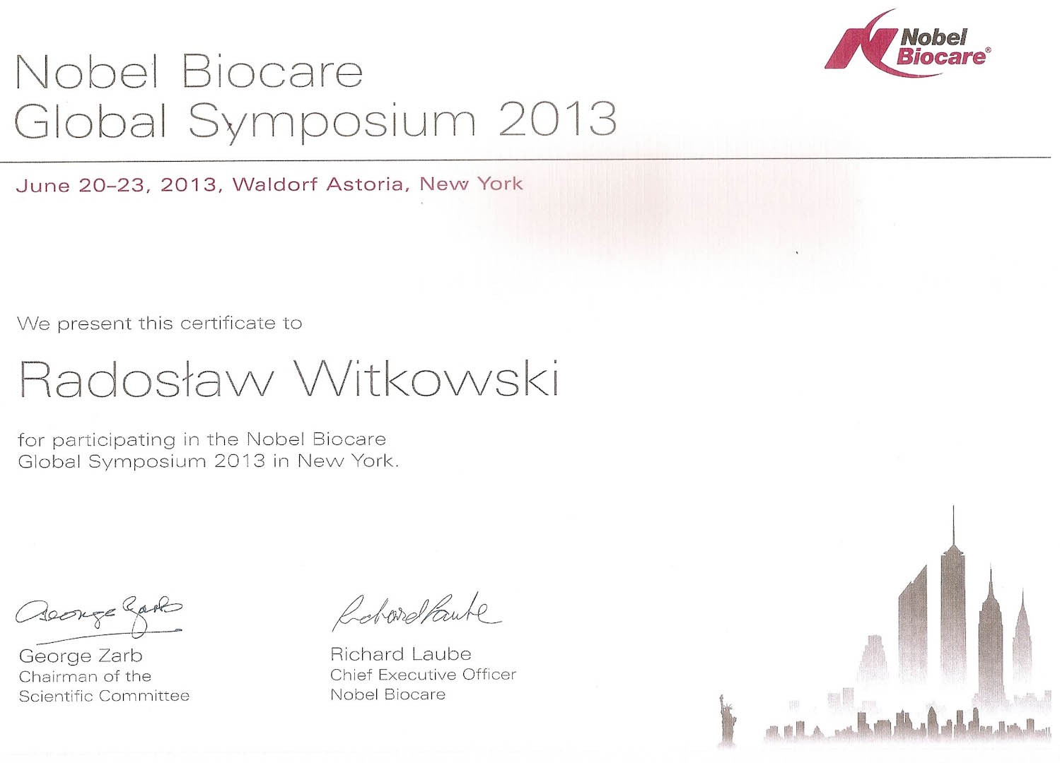 Certyfikat 2013.06.20 symposium Nowy Jork