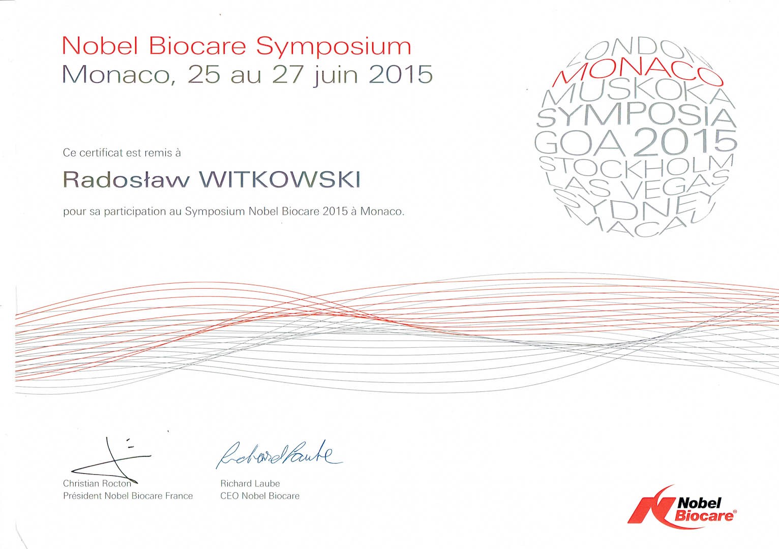 Certyfikat 2015.06.25 27 symposium Monako