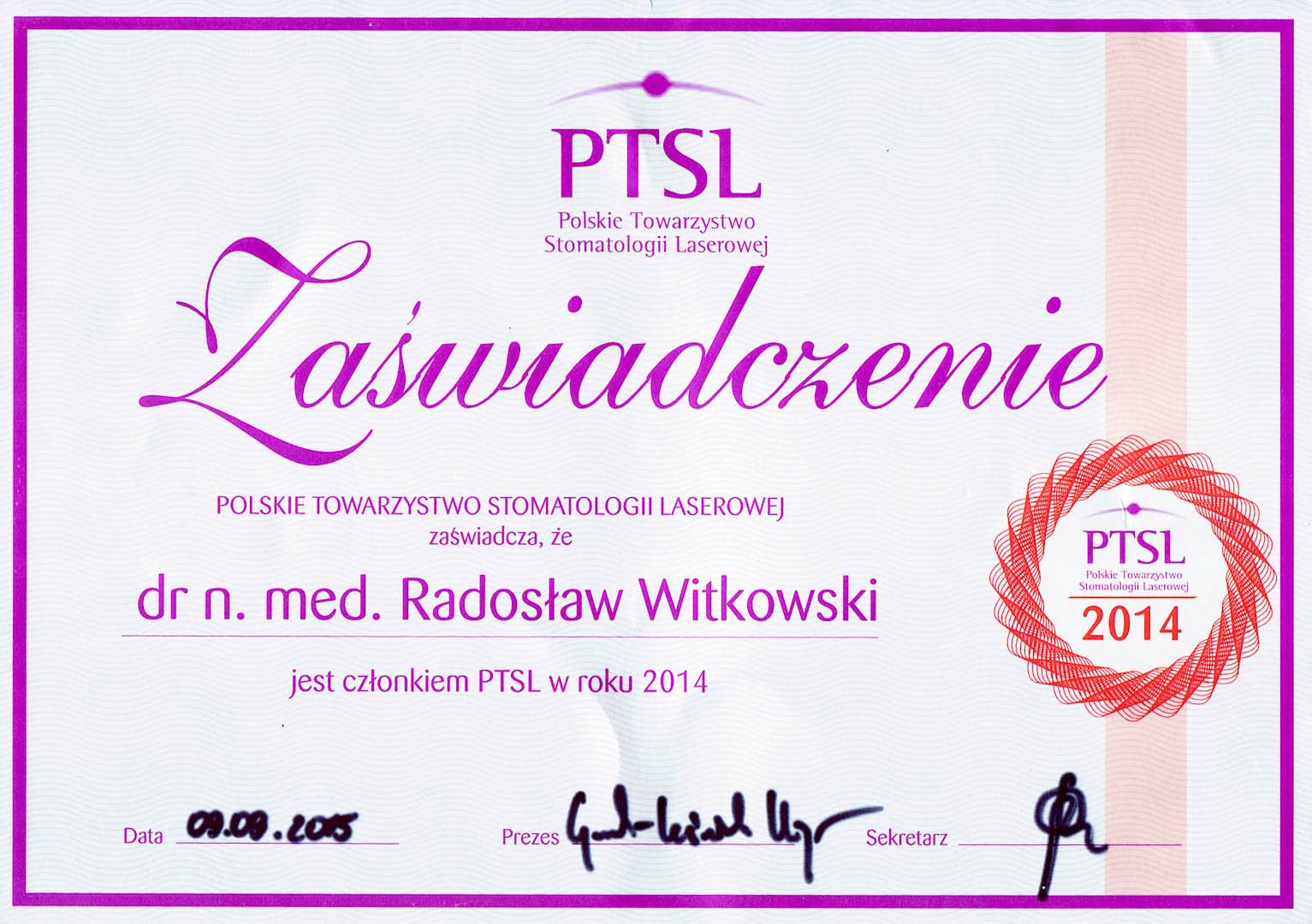 Certyfikat 2015.09.09 zaswiadczenie PTSL
