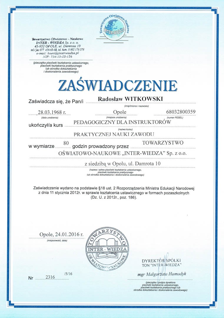 Certyfikat 2016.01.24 zaswiadczenie Opole