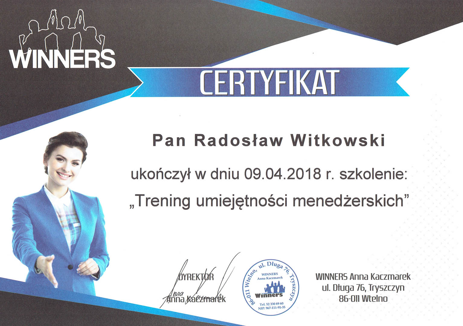 Certyfikat 2018.04.09 szkolenie Wtelno