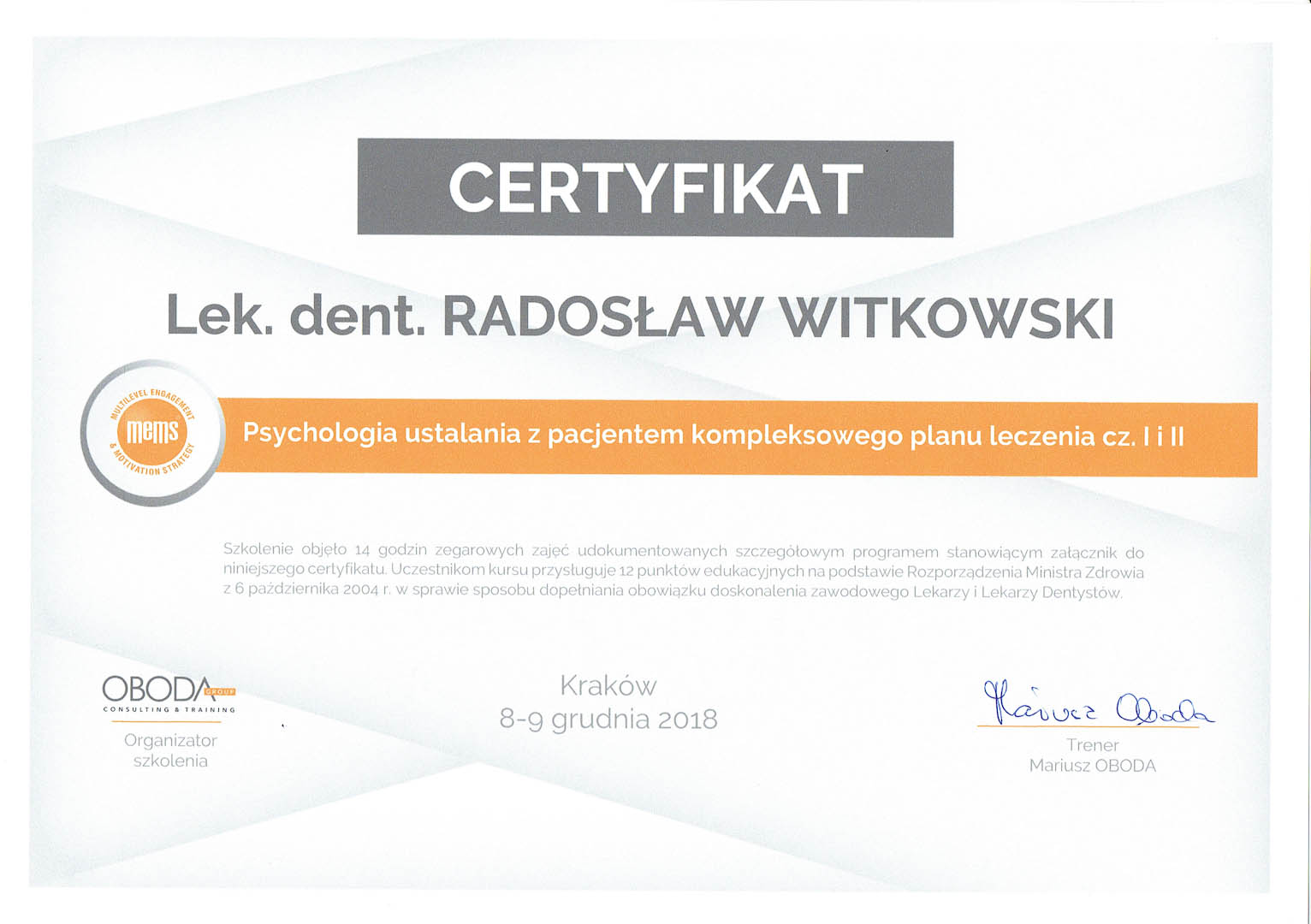 Certyfikat 2018.11.09 10 szkolenie Santorski