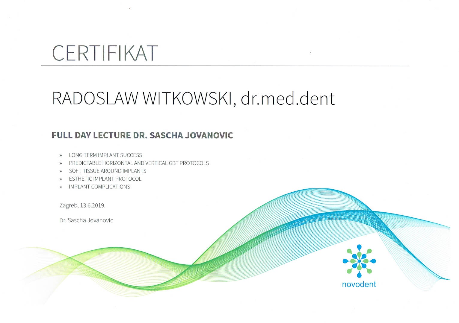 Certyfikat 2019.06.13 szkolenie Zagrzeb