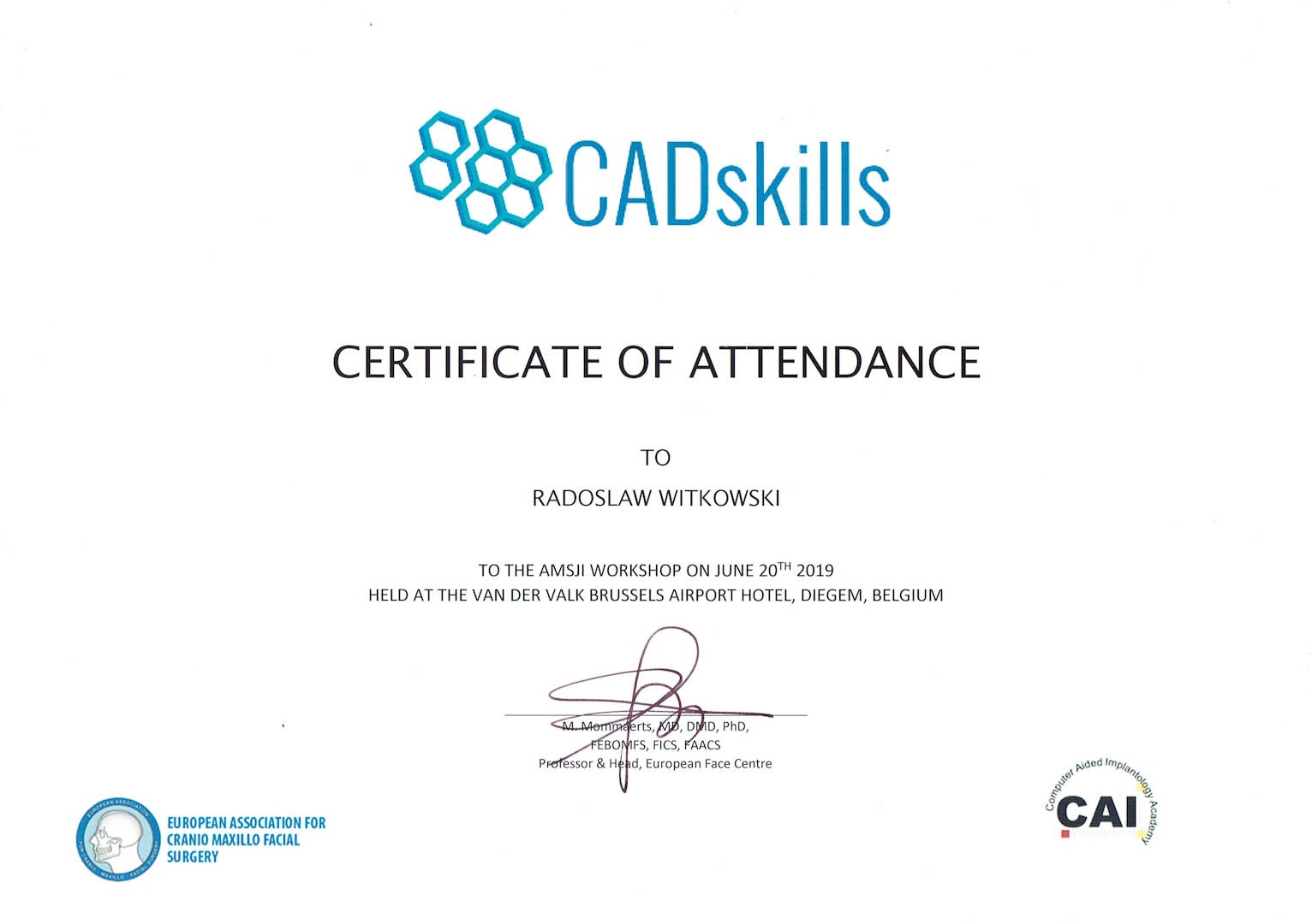 Certyfikat 2019.06.20 szkolenie Belgia