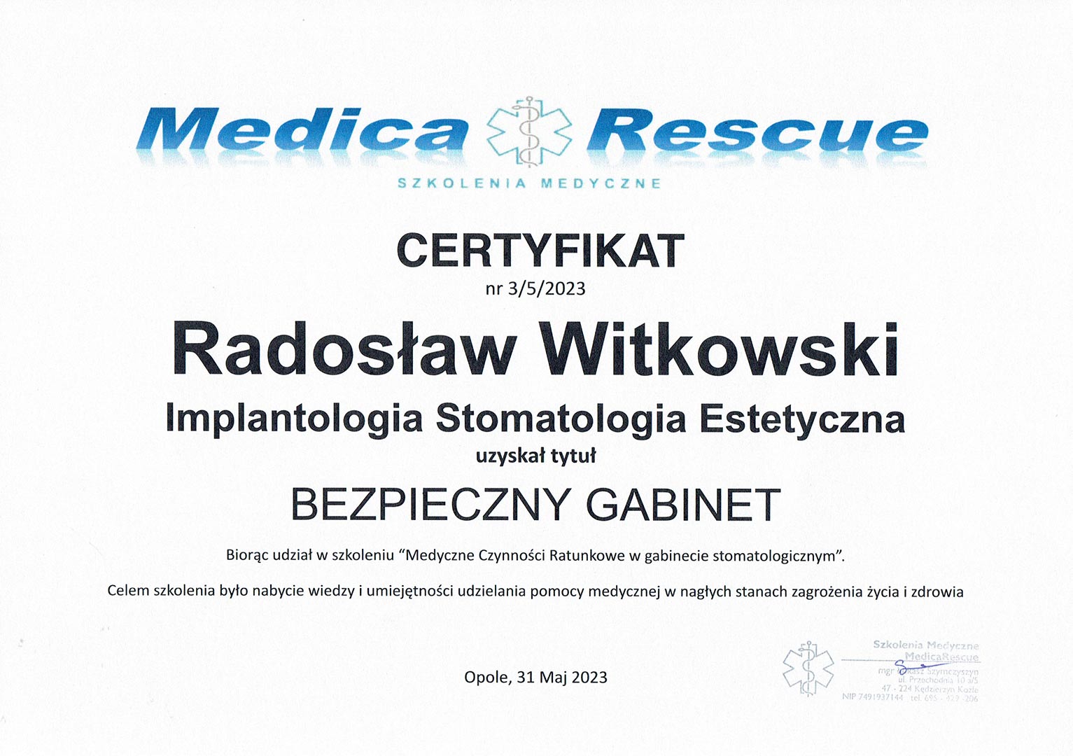 Certyfikat 2023.05.21 Bezpieczny Gabinet