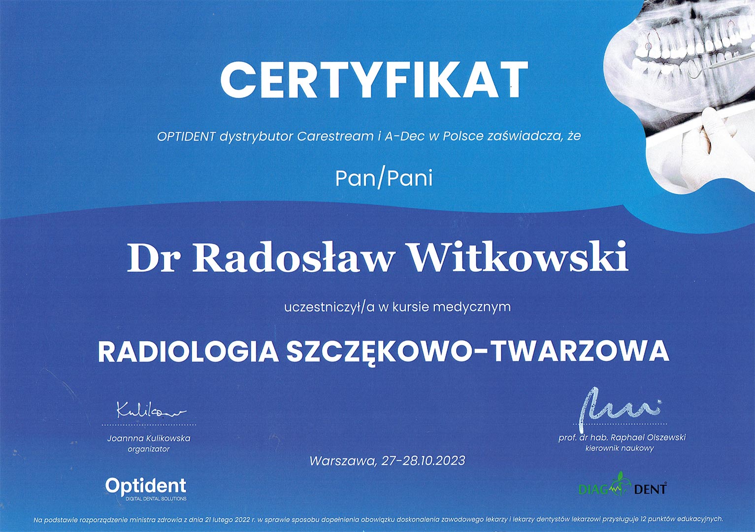 Certyfikat 2023.10.28 Radiologia