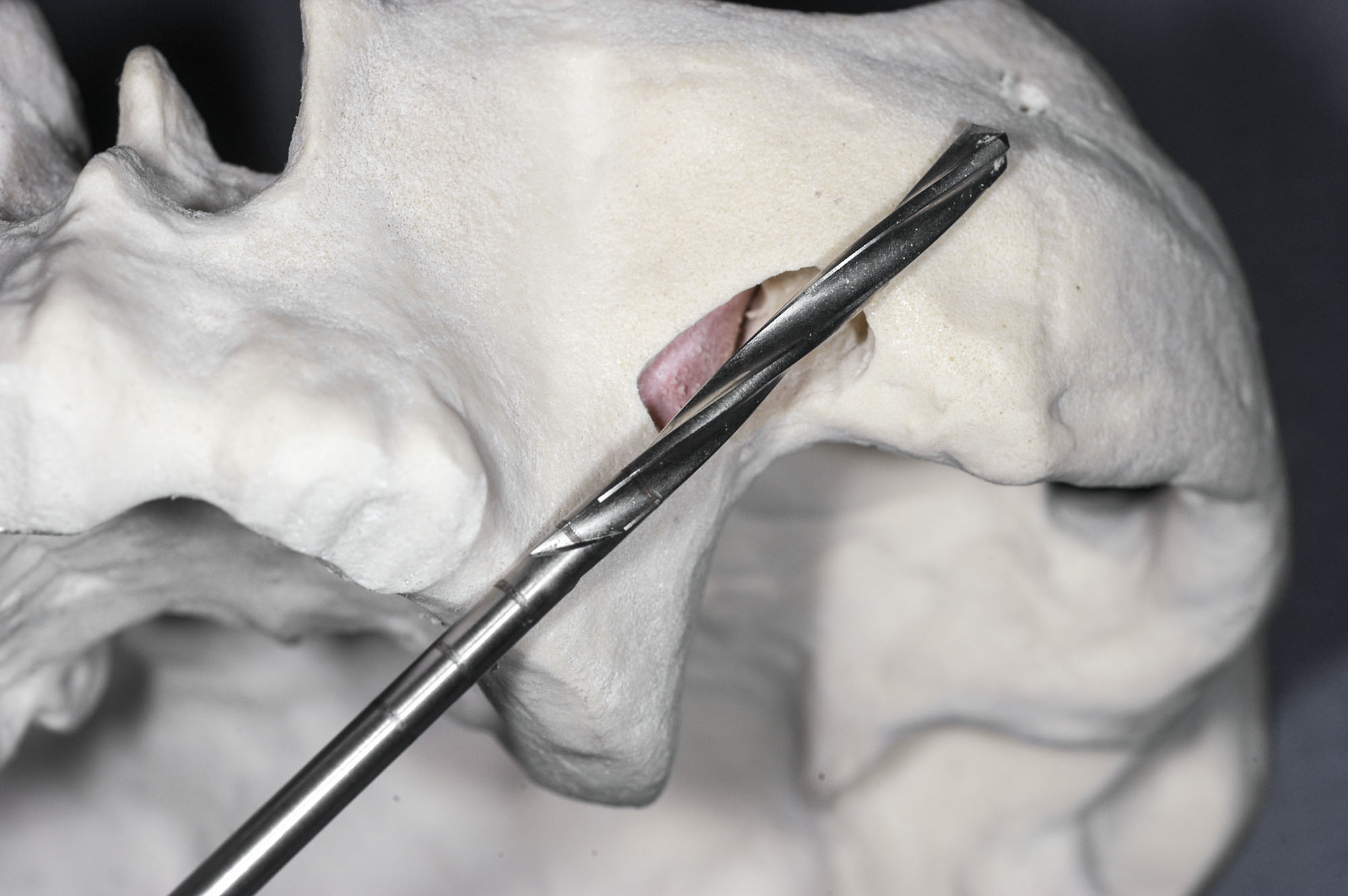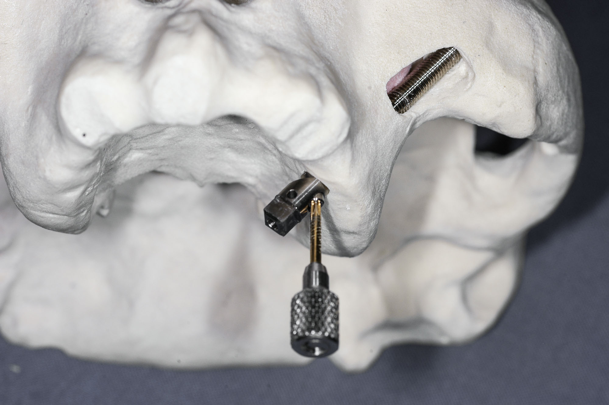 Koncepcja 45° wynika ze skośnej pozycji implantu mocowanego w zatoce szczękowej i trzonie kości jarzmowej, tak aby uprościć i zoptymalizować rozwiązania protetyczne.