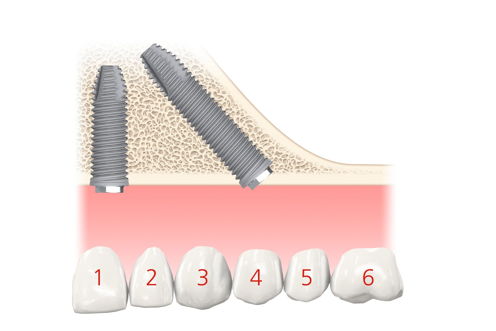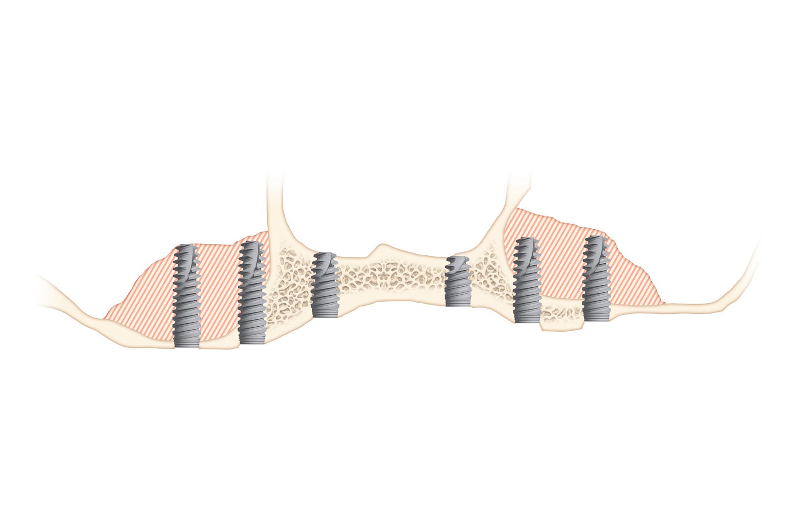 decydują o niepowtarzalnym podejściu do kwalifikacji u każdego pacjenta. Jednakże dla stworzenia harmonijnego rozkładu sił w przyszłych protezach implanty jarzmowe umieszcza się przeważnie symetrycznie po bokach, natomiast stan i objętość pozostałej kości w przednim odcinku szczęki decyduje o tym, jaki układ implantów będzie stanowić fundament dla przyszłych uzupełnień protetycznych.