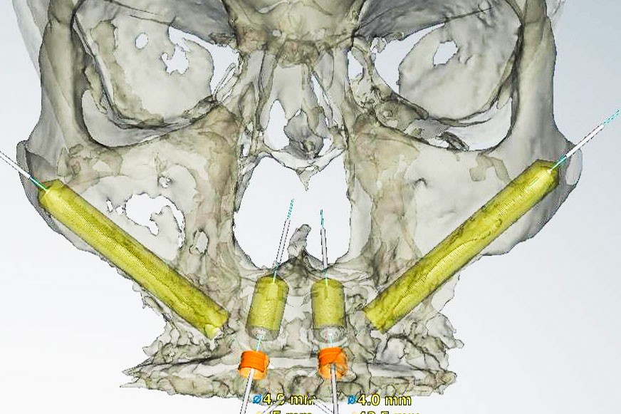 W sytuacjach ekstremalnie trudnych i nieprzewidywalnych przed zabiegiem operacyjnym omawiamy z pacjentem warianty i możliwości rozłożenia implantów, które w zależności od warunków kostnych, zastanych śródzabiegowo, wszczepiamy w optymalnej pozycji dla przypadku.