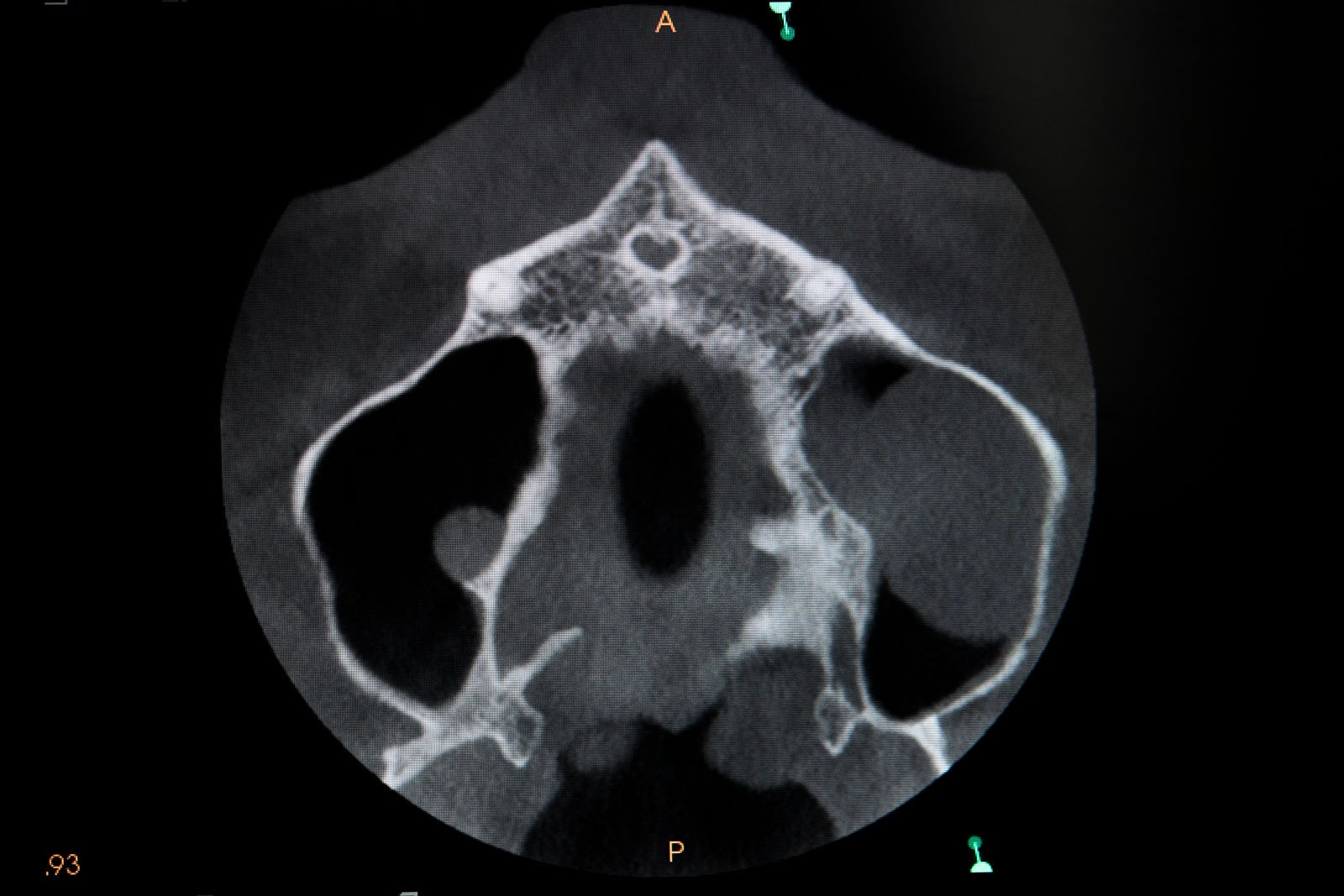 CT tomografia komputerowa liniowa ukazująca stan całości zatok okołonosowych, drzewo małżowinowe, stopień skrzywienia przegrody nosa, stopień obturacji naturalnego otworu łączącego jamę nosa z zatoką szczękową – rozworu zatoki szczękowej.